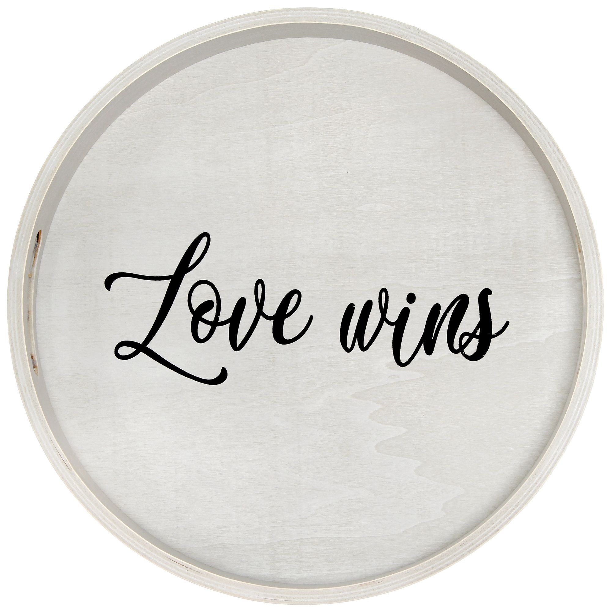 Elegant Designs 13.75" Round Wood Serving Tray w Handles, "Love W