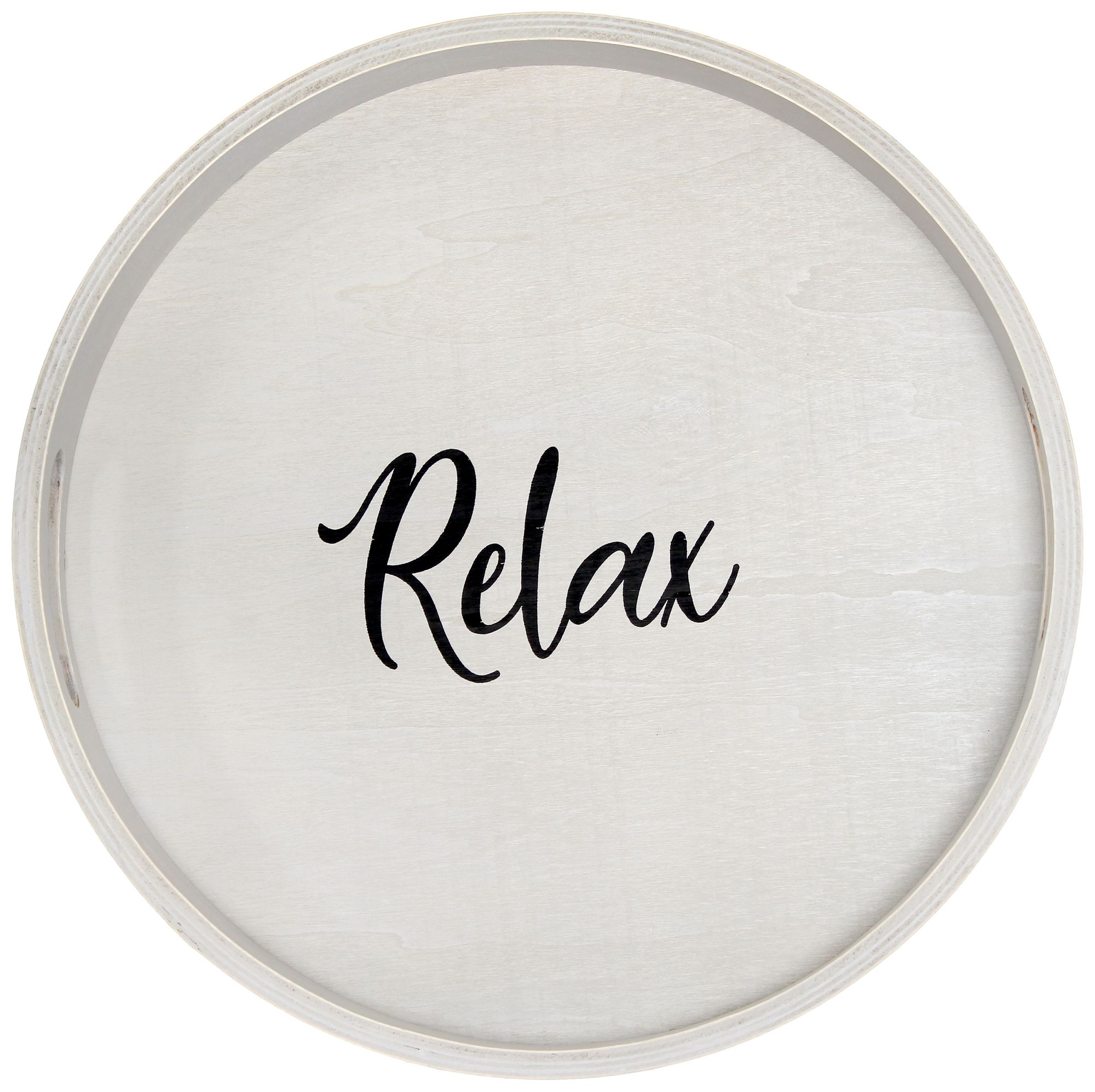 Elegant Designs 13.75" Round Wood Serving Tray w Handles, "Relax&