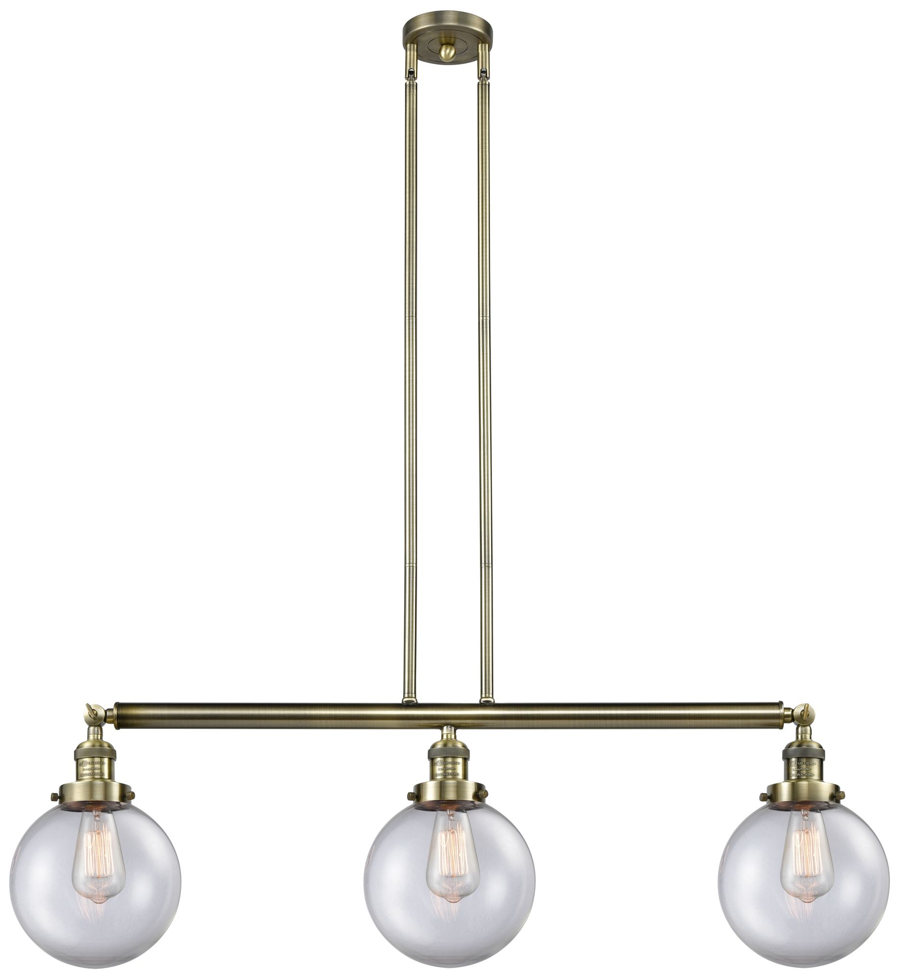 Beacon 3 Light 41" LED Island Light - Antique Brass - Clear Shade