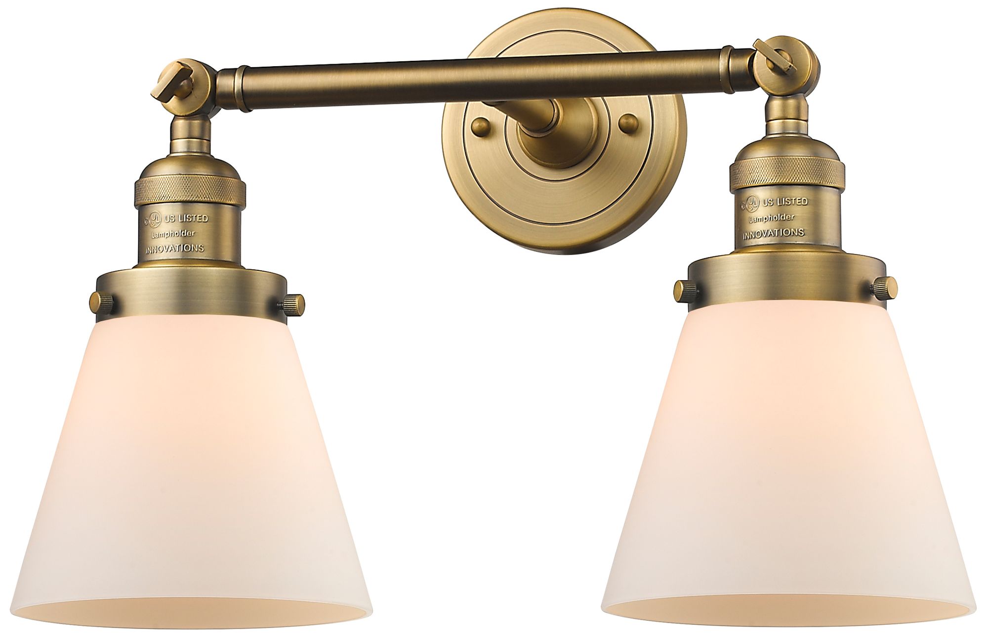 Small Cone 16" 2-Light Brushed Brass Tiltable Bath Light w/ White Shad