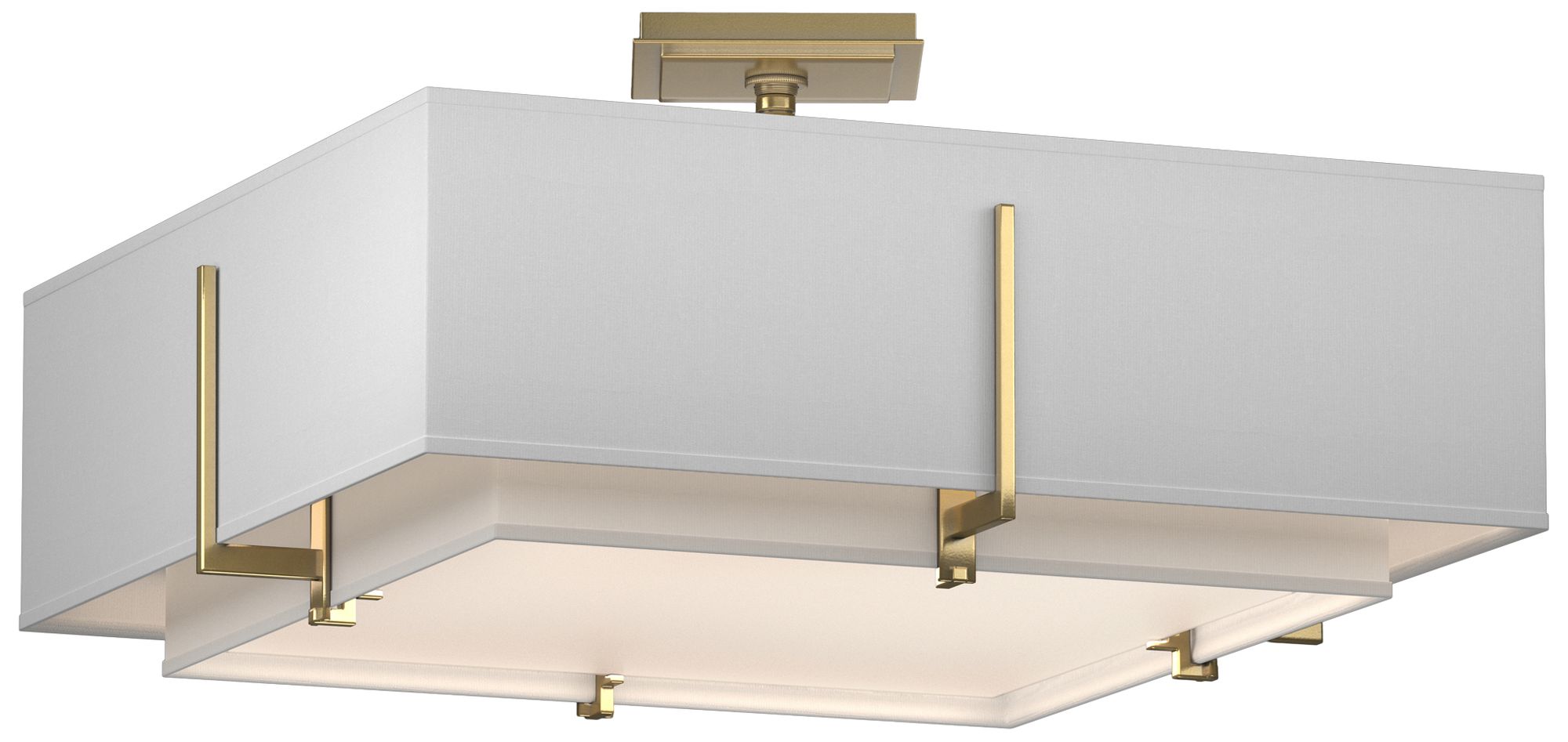 Exos 20.6"W Double Shade Square Brass Semi-Flush w/ Anna & Anna Sh
