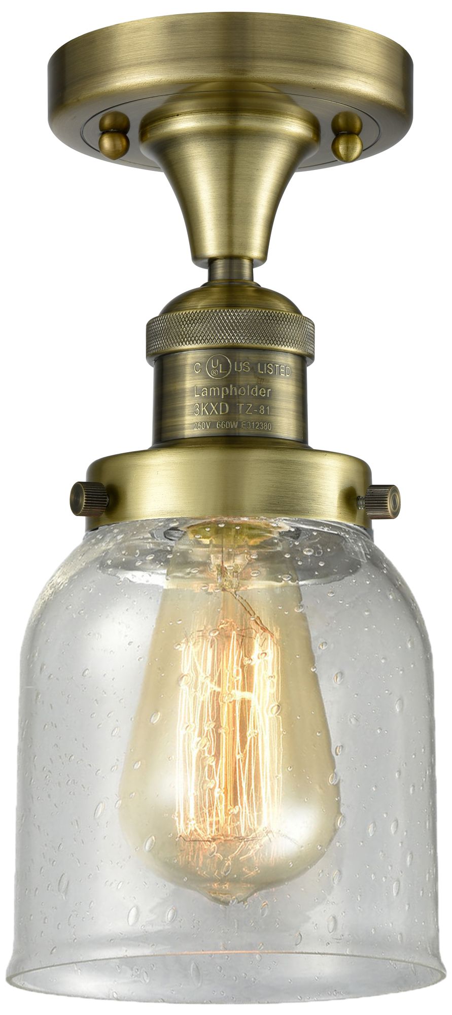 Bell 5" Wide Antique Brass Semi Flush Mount w/ Seedy Shade