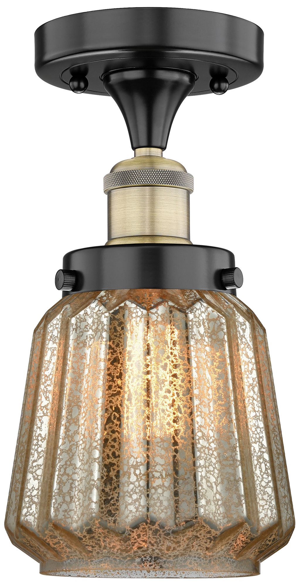 Chatham 6.5"W Black Antique Brass Semi.Flush Mount With Mercury Glass