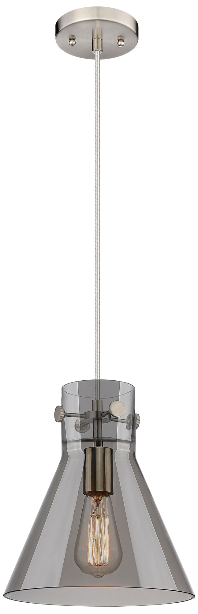 Newton Cone 10" Wide Satin Nickel Cord Hung Pendant With Plated Smoke