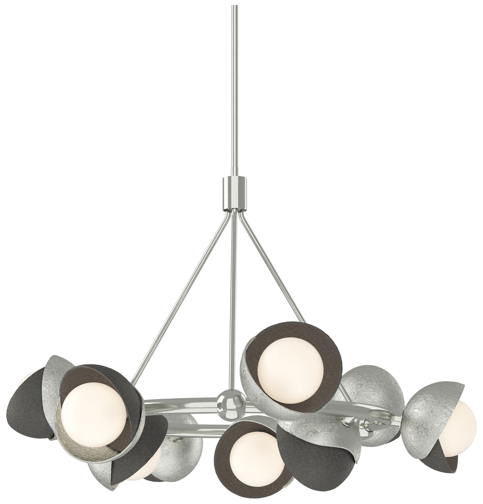 Brooklyn 32"W 9-Light Iron Accented Sterling Double Shade Ring Pendant