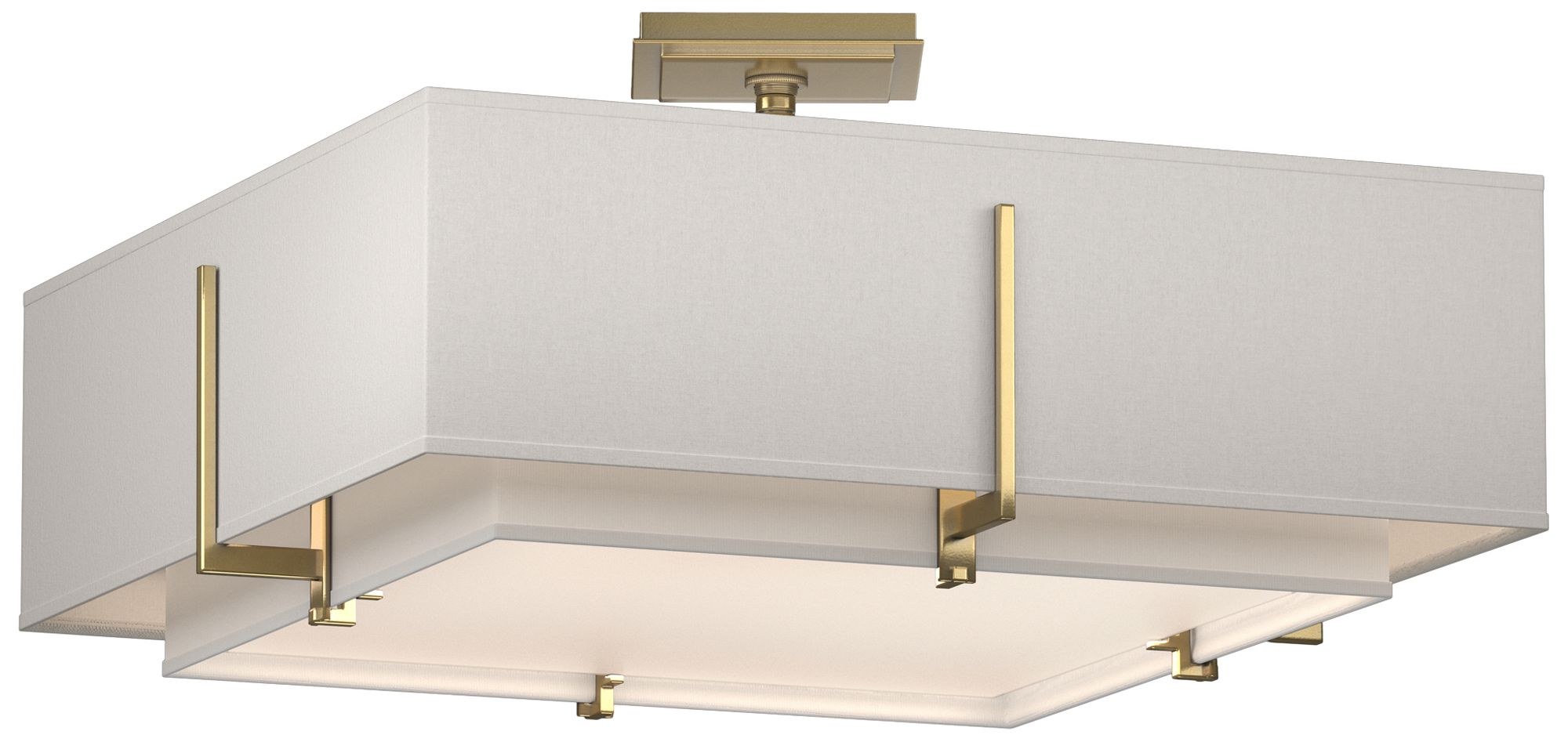 Exos 20.6"W Double Shade Square Brass Semi-Flush w/ Anna & Flax Sh