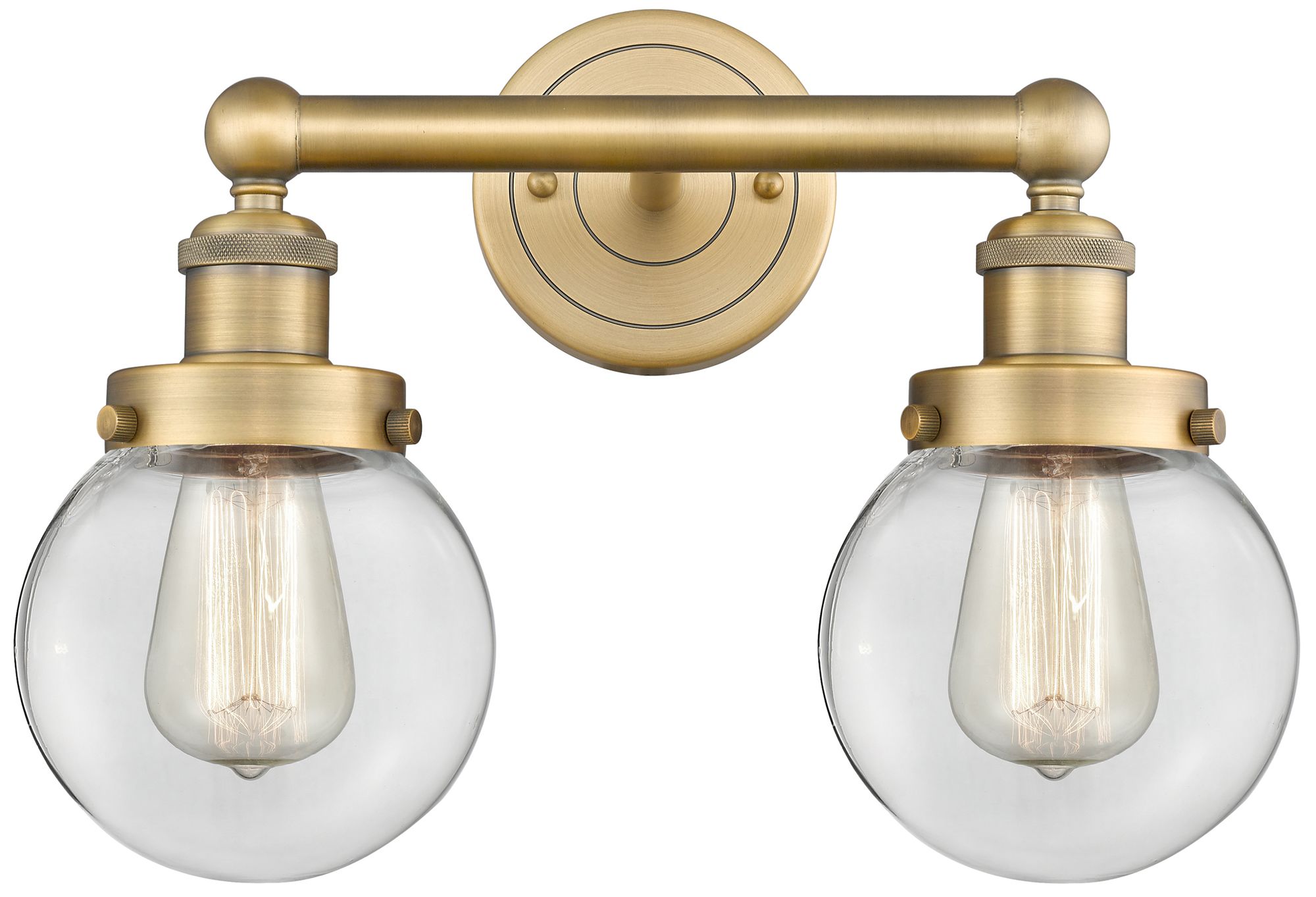 Small Edison Beacon 15.5"W 2 Light Brushed Brass Bath Light w/ Clear S