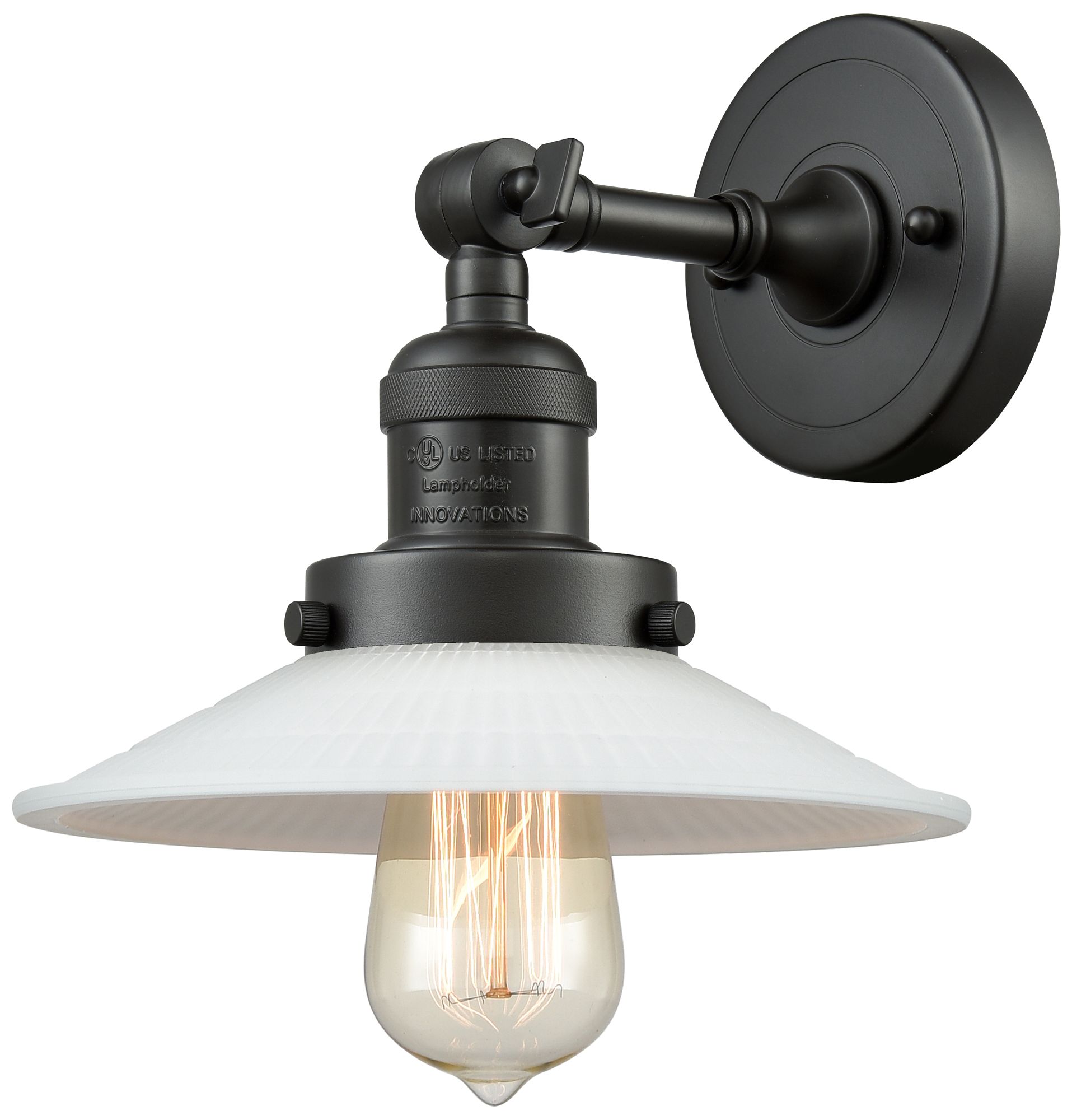 Franklin Restoration Halophane 9" LED Sconce - Matte Black - White Sha