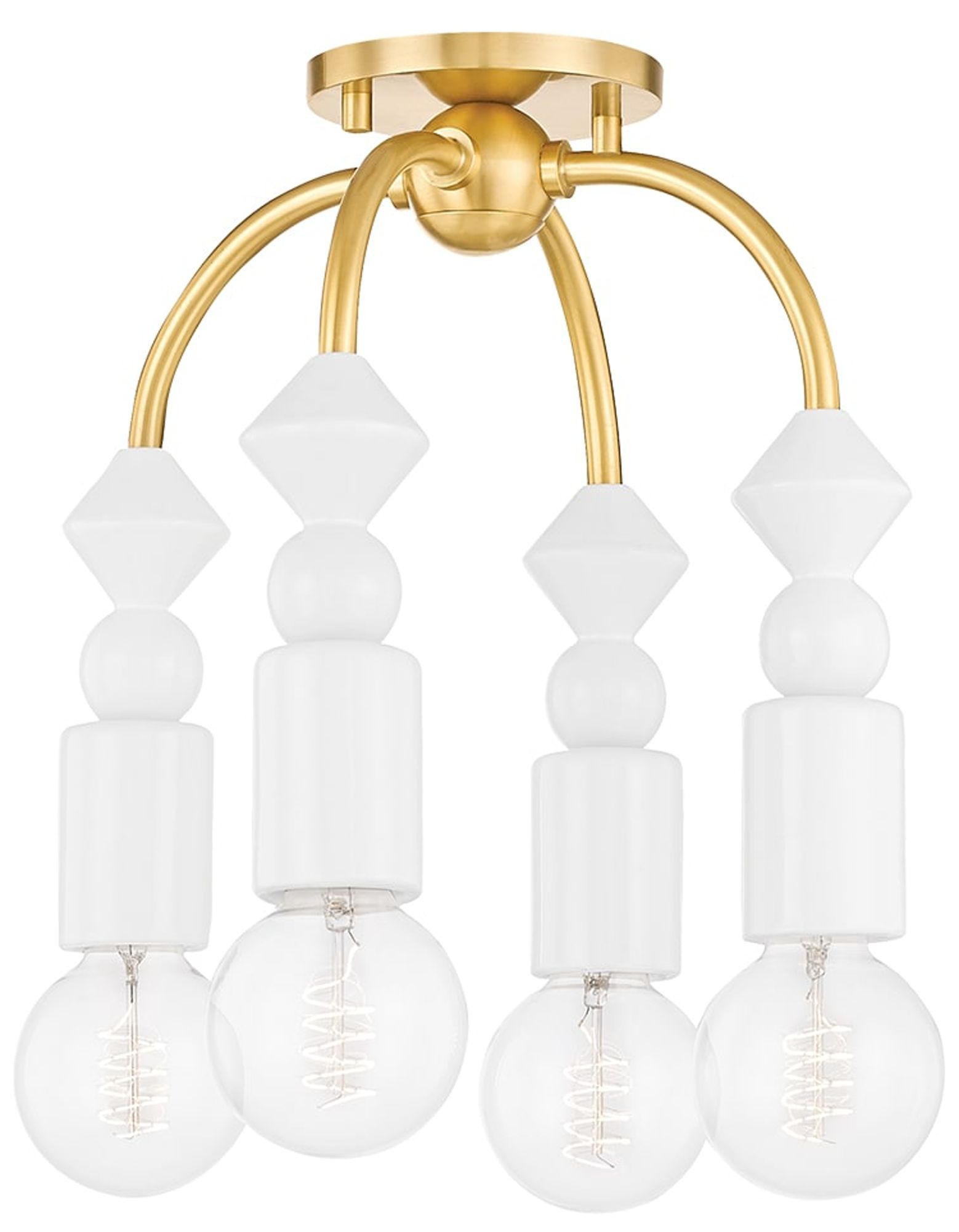 Hudson Valley Flora 12" Wide 4-Light Aged Brass Ceiling Light
