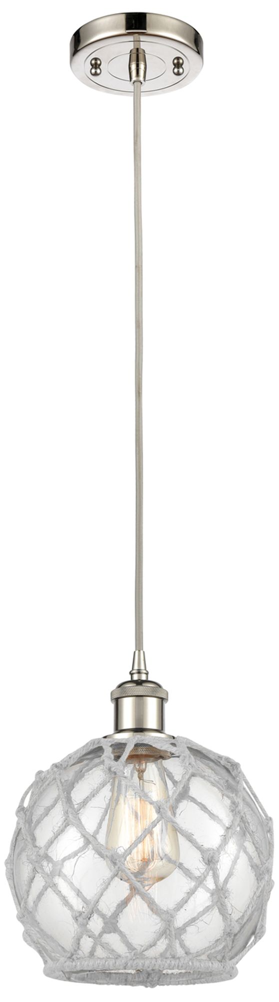 Farmhouse Rope 8"W Polished Nickel Cord Mini Pendant Clear and White S