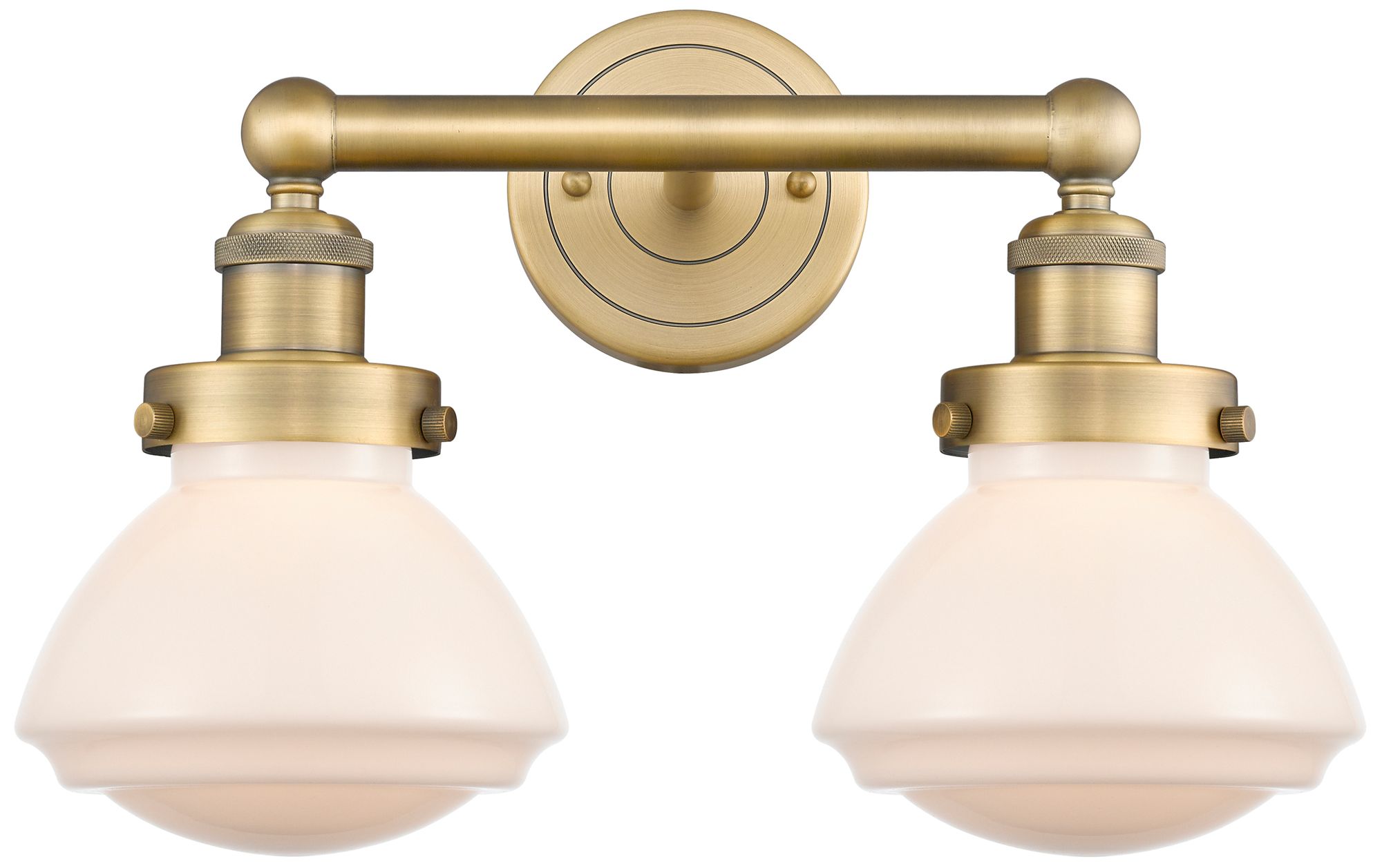 Olean 15.5"W 2 Light Brushed Brass Bath Vanity Light With Matte White