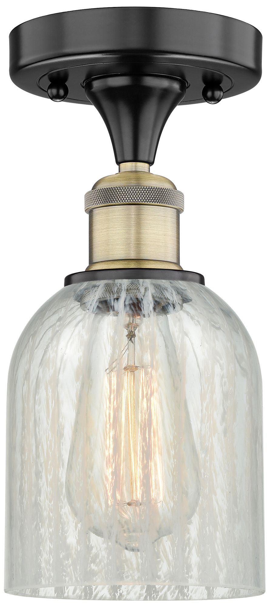 Caledonia 5"W Black Antique Brass Flush Mount With Mouchette Glass Sha