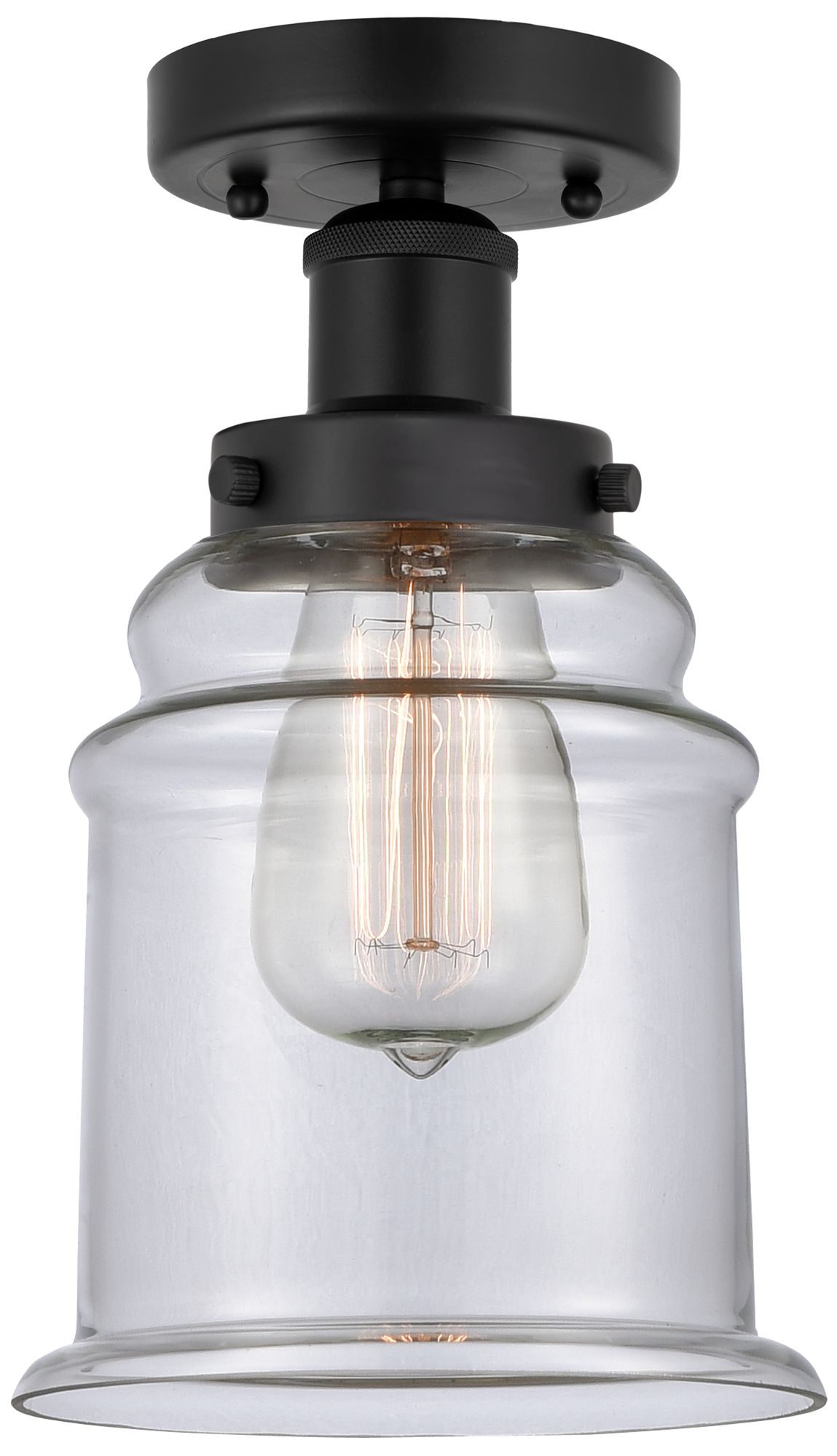 Edison Canton 6" Matte Black Semi Flush Mount w/ Clear Shade