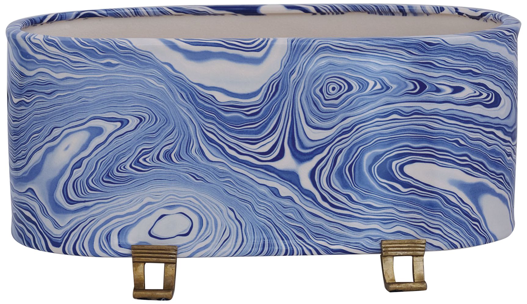 Port 68 Arctic Blue and White Malachite 18"W Oval Planter
