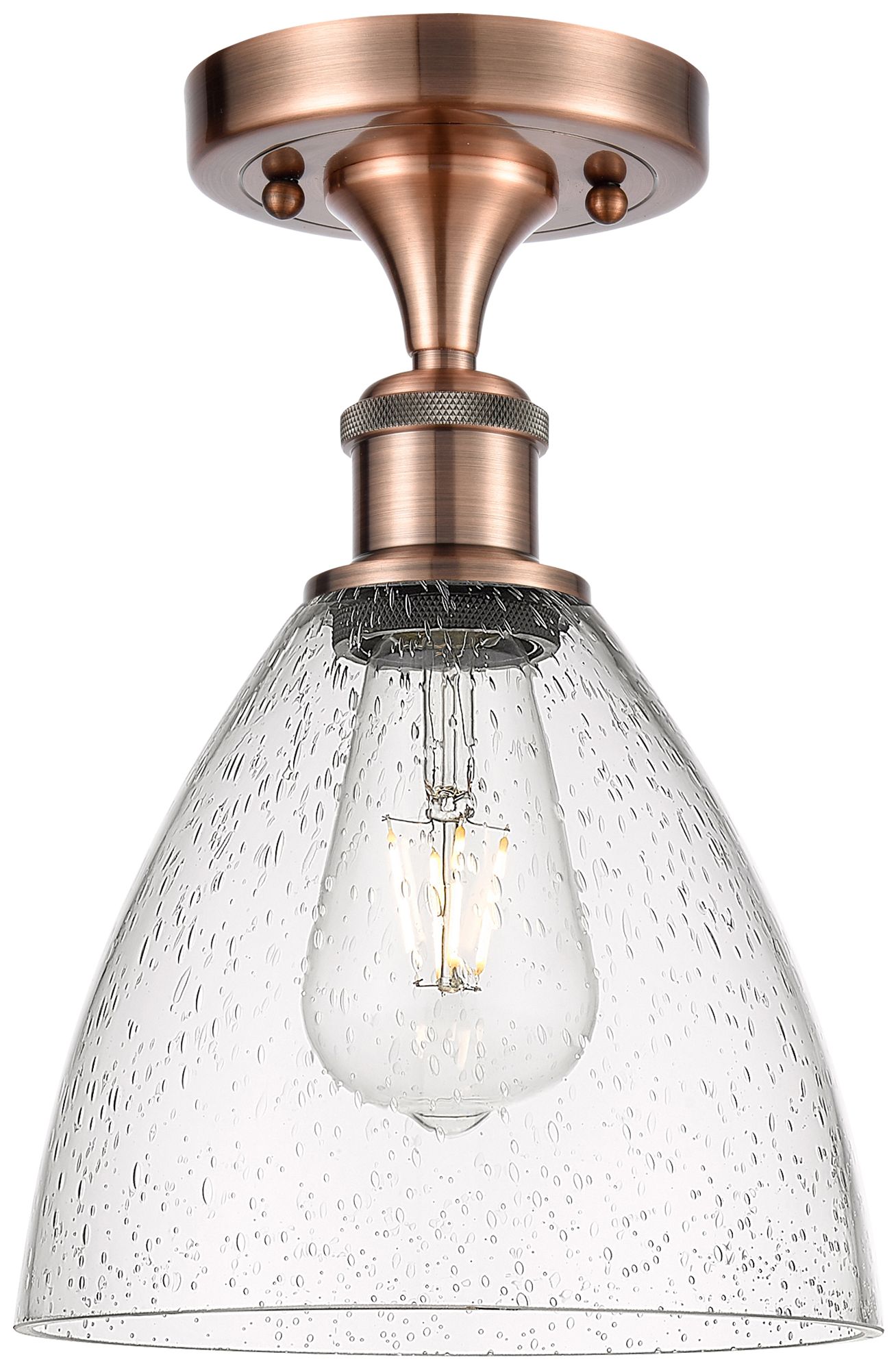 Bristol Glass 8" Semi-Flush Mount - Antique Copper - Seedy Shade