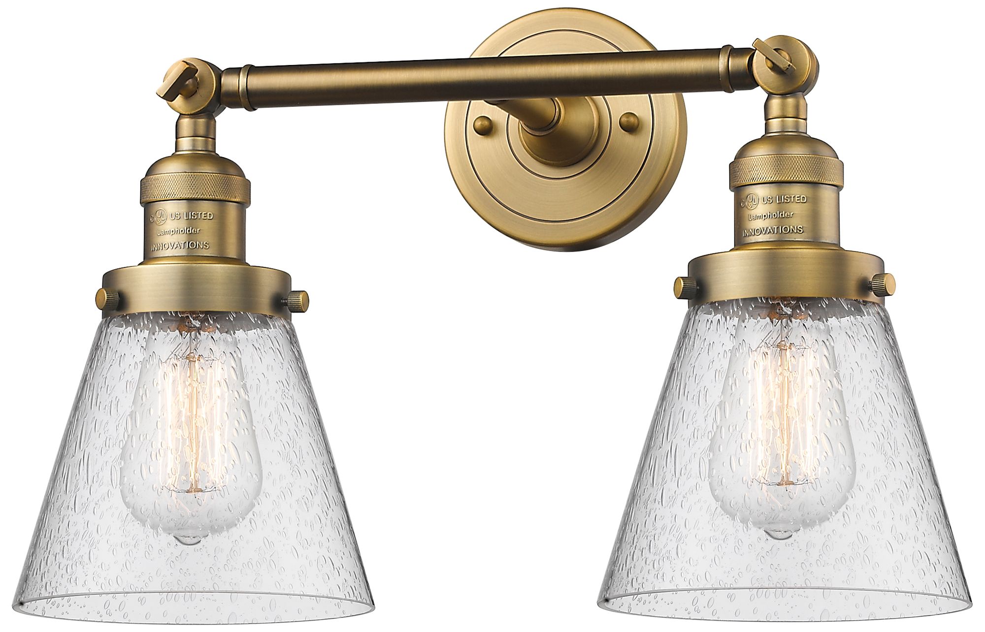 Small Cone 16" 2-Light Brushed Brass Tiltable Bath Light w/ Seedy Shad