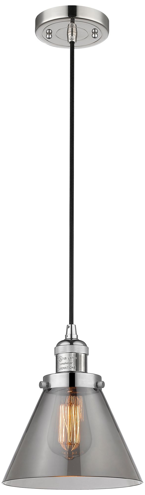 Franklin Cone 8" Polished Nickel Corded Mini Pendant w/ Smoke Shade