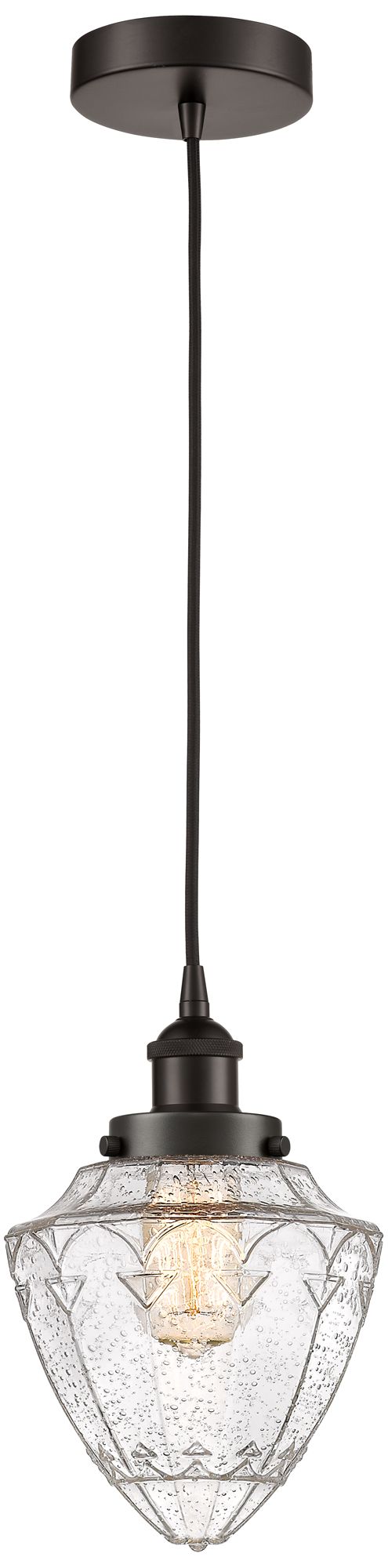 Bullet 7" Oil Rubbed Bronze Cord Hung Mini Pendant w/ Seedy Shade
