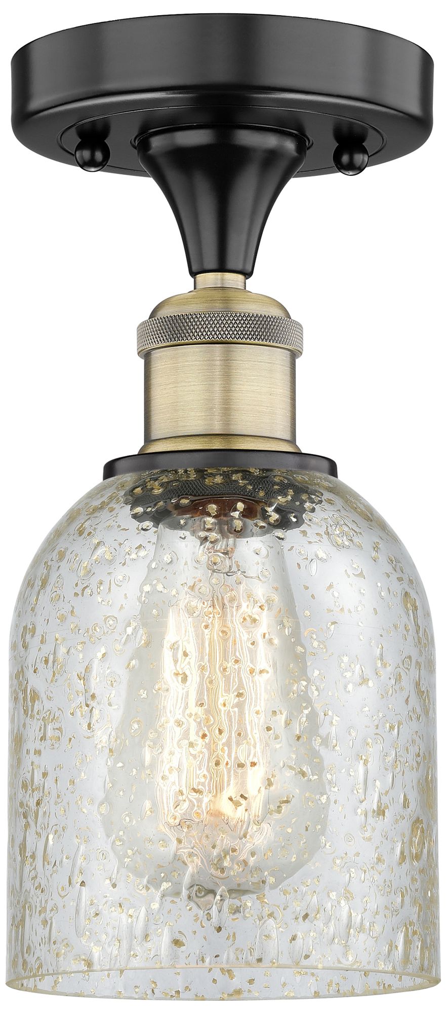 Caledonia 5" Wide Black Antique Brass Flush Mount With Mica Glass Shad