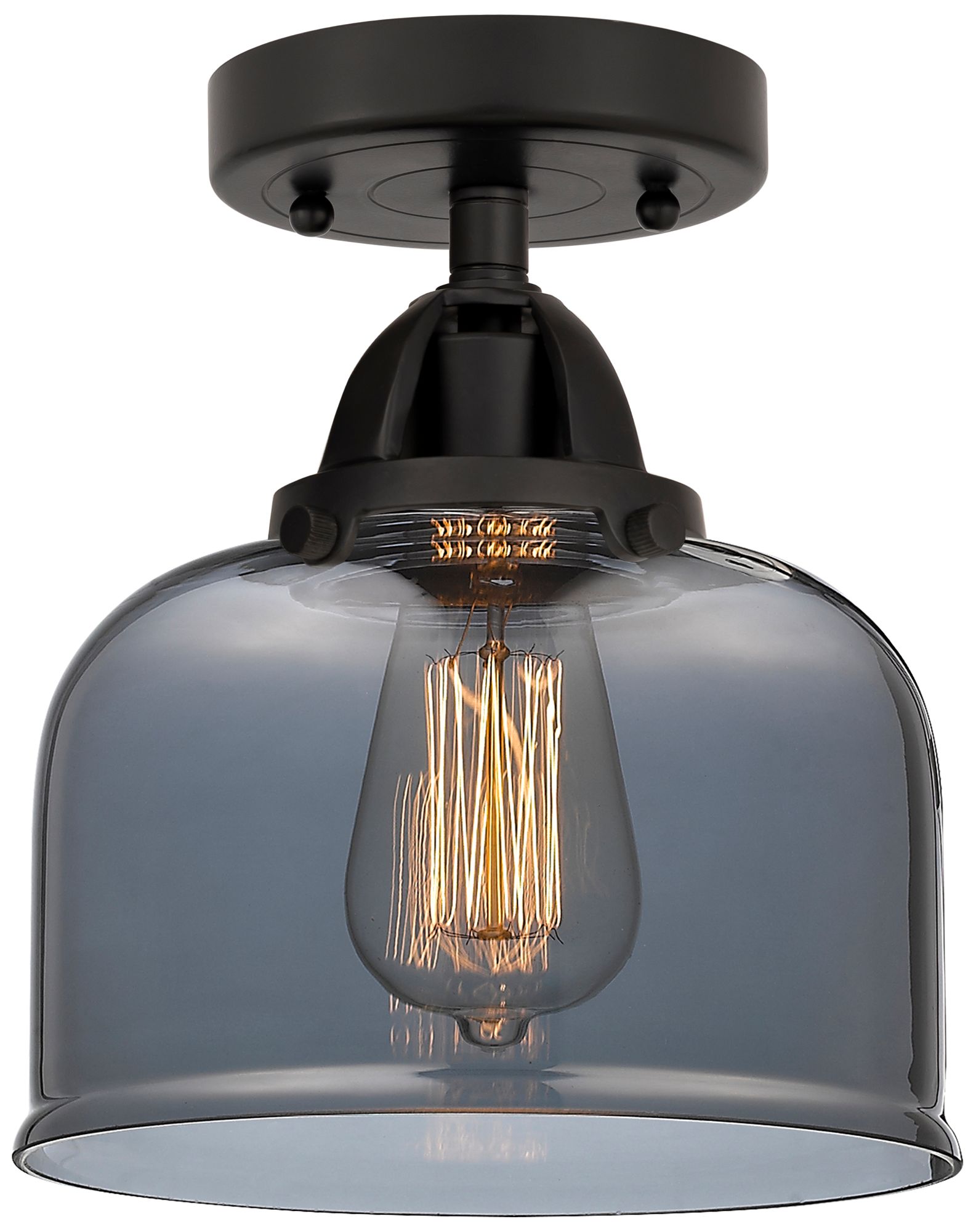 Nouveau 2 Bell 8" Semi-Flush Mount - Matte Black - Plated Smoke Shade