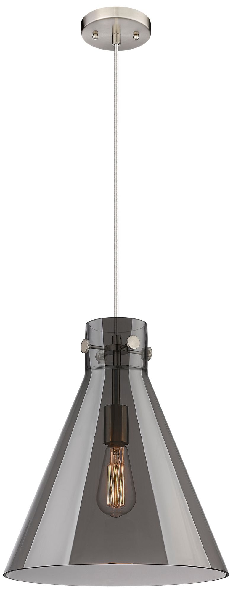 Newton Cone 14" Wide Satin Nickel Cord Hung Pendant With Plated Smoke