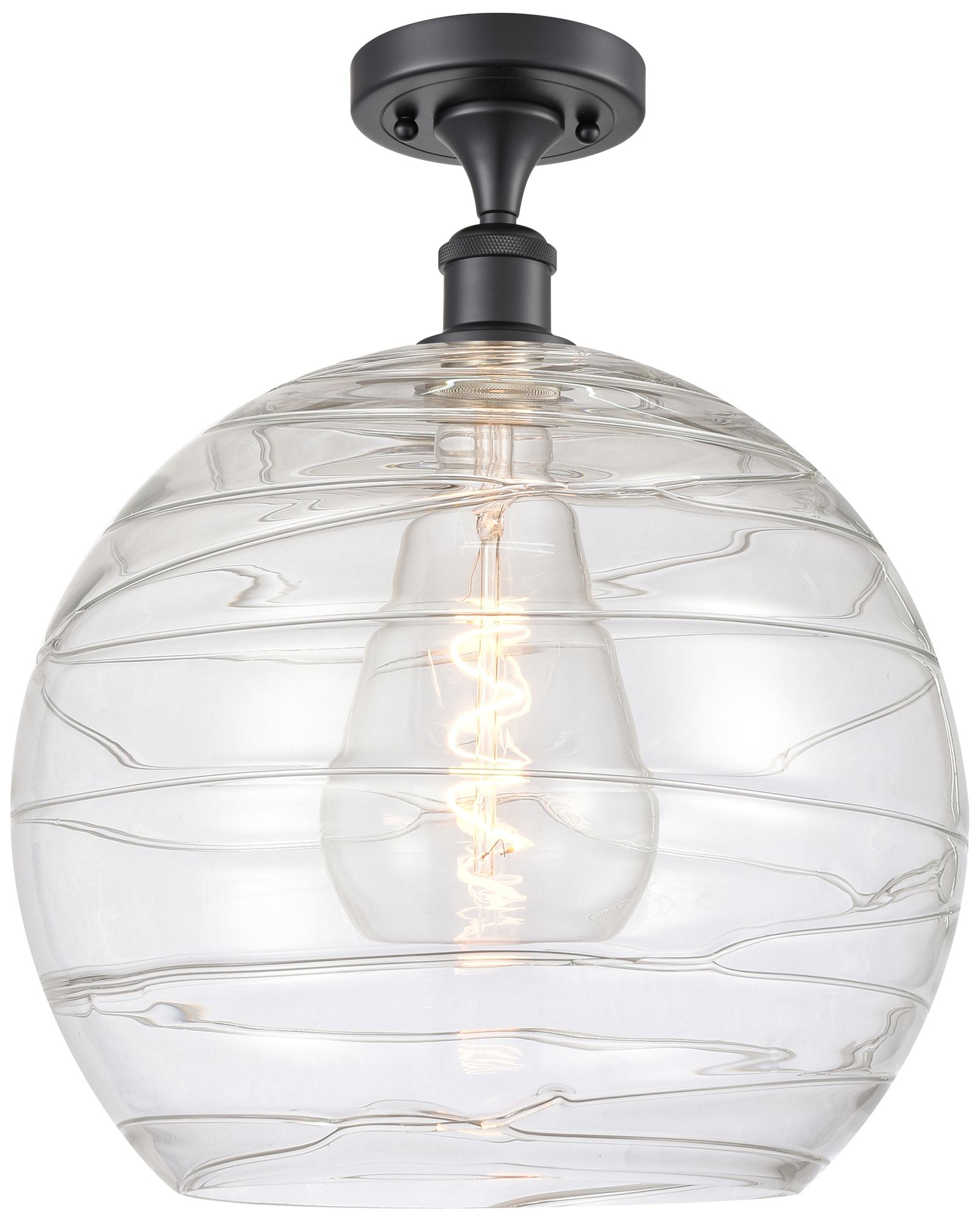 Athens Deco Swirl 14" LED Semi-Flush Mount - Black - Clear Deco Swirl
