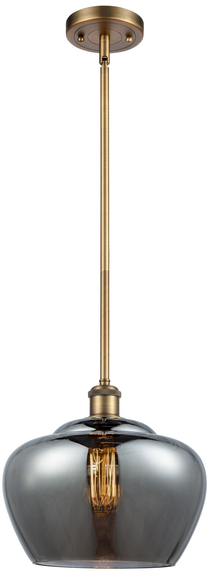 Ballston Fenton 11" Brushed Brass Mini Pendant w/ Plated Smoke Shade