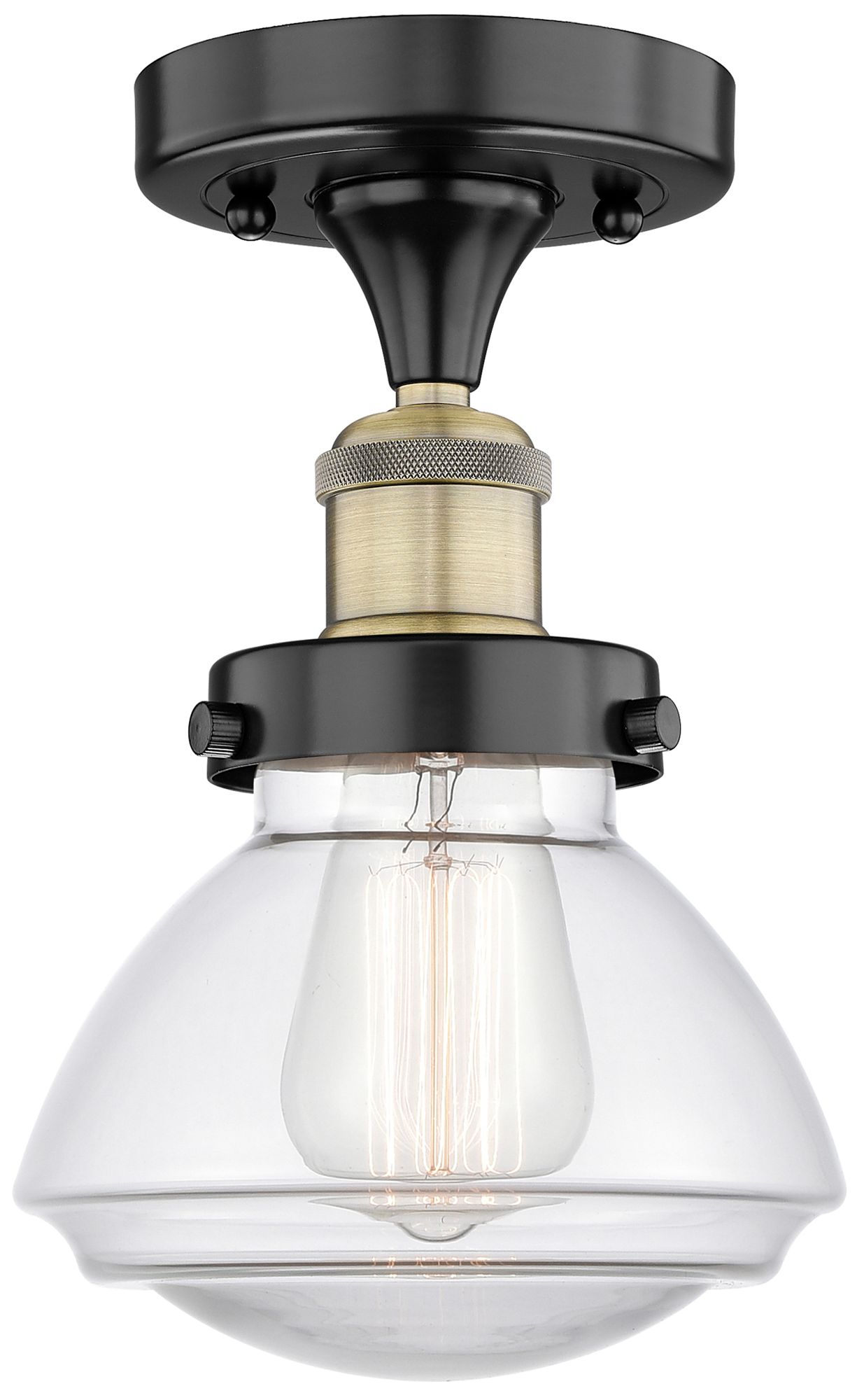Olean 6.5" Wide Black Antique Brass Semi.Flush Mount With Clear Glass