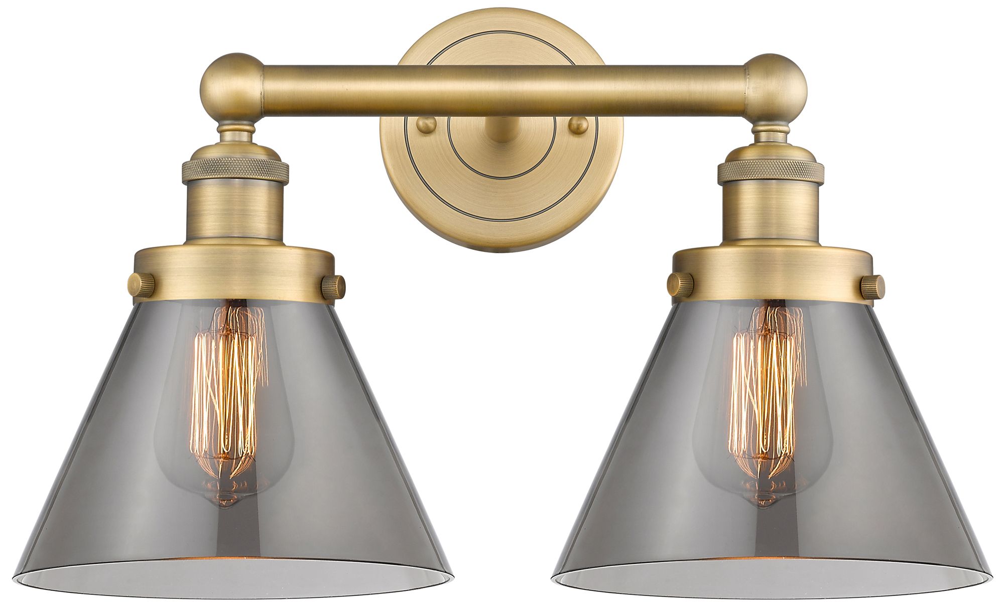 Edison Cone 15.5"W 2 Light Brushed Brass Bath Light With Plated Smoke