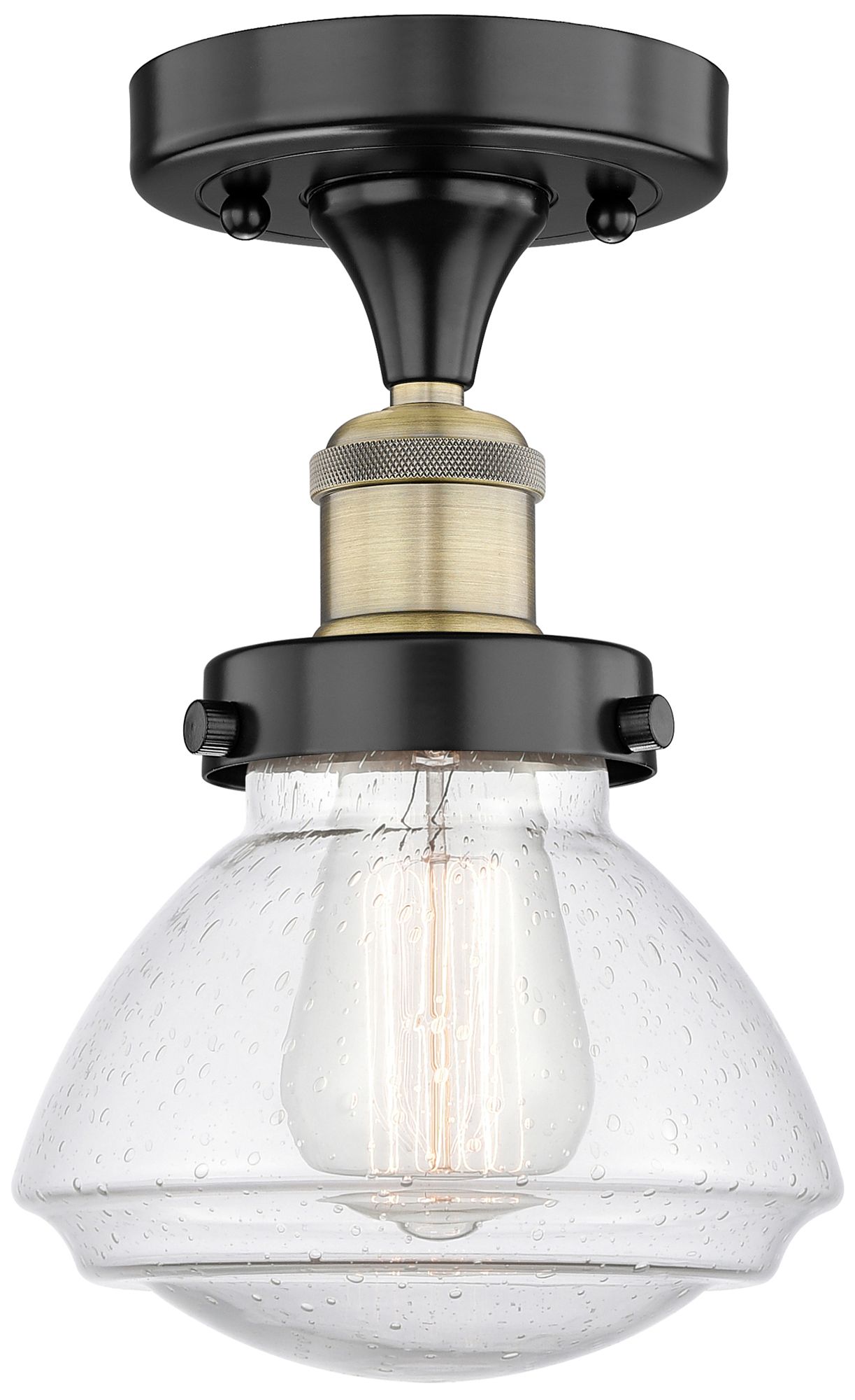 Olean 6.5" Wide Black Antique Brass Semi.Flush Mount With Seedy Glass