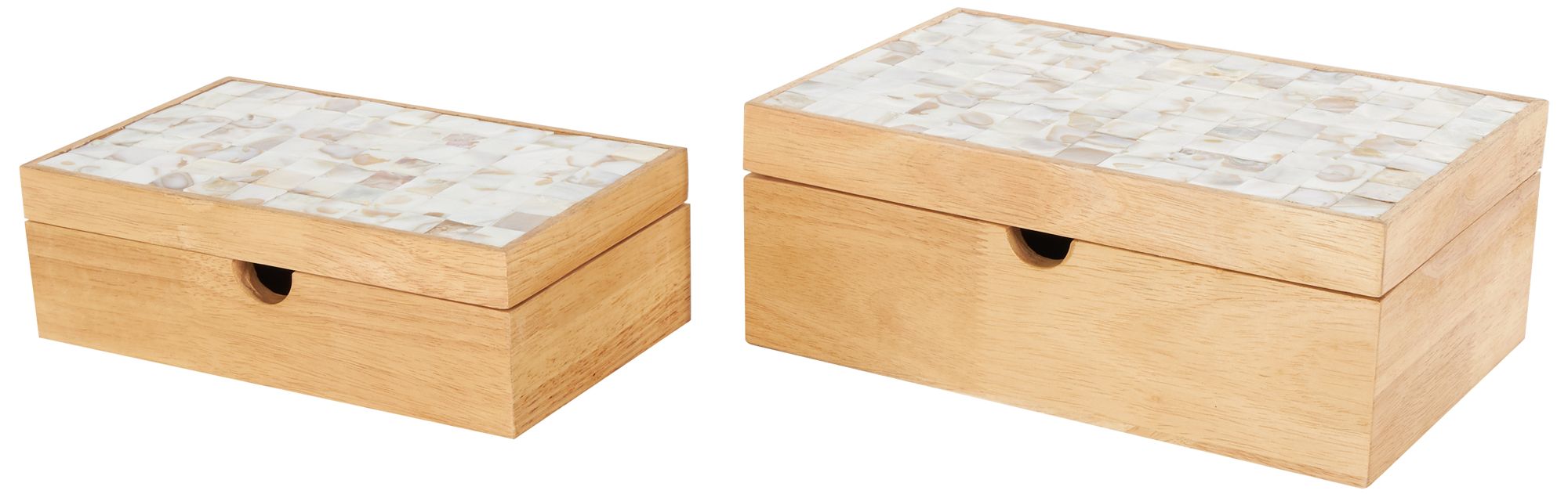 Light Brown Wood Handmade Storage Decorative Box, Set of 2 12", 10"H