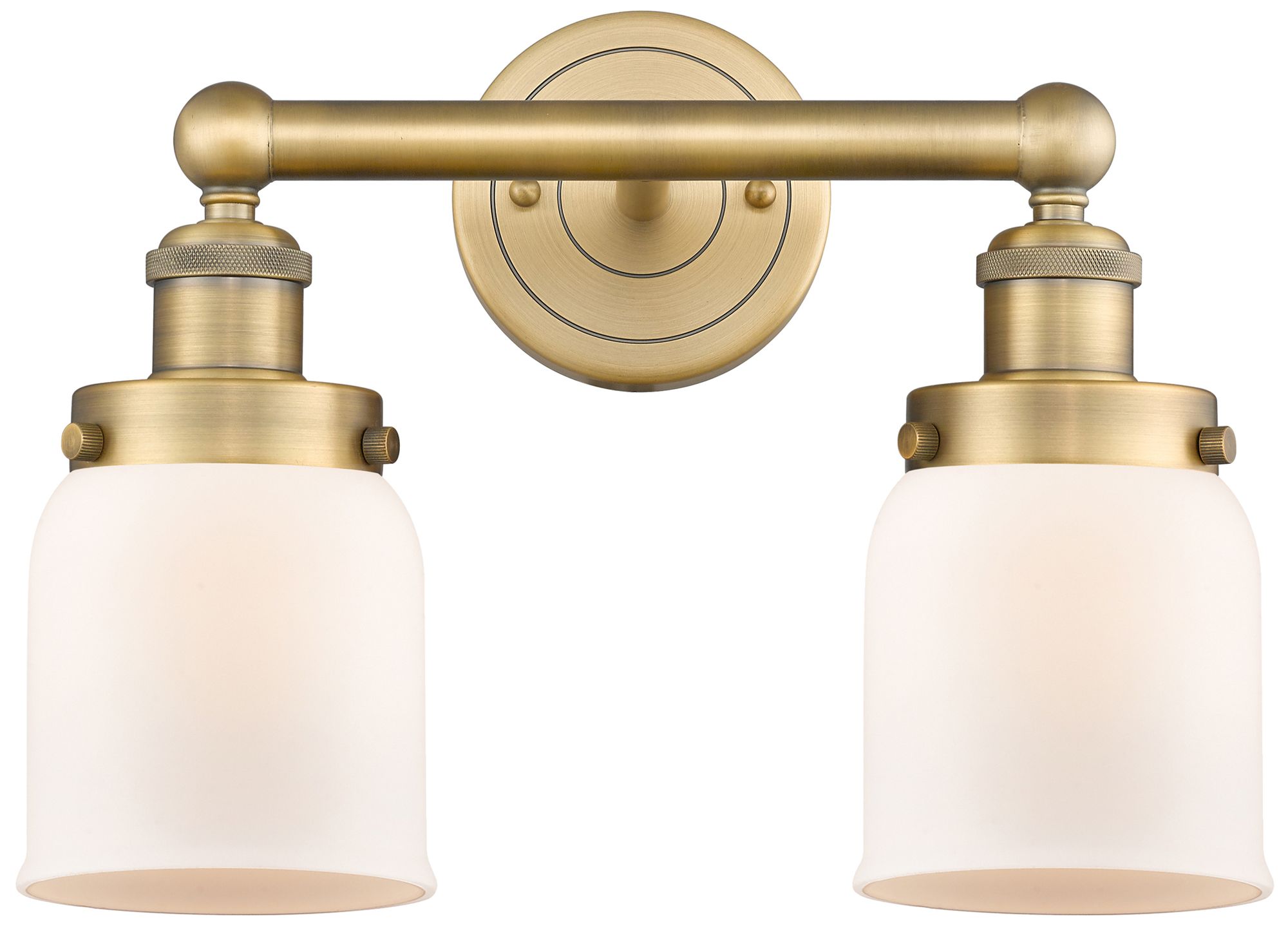 Edison Small Bell 15.5"W 2 Light Brushed Brass Bath Light With White S