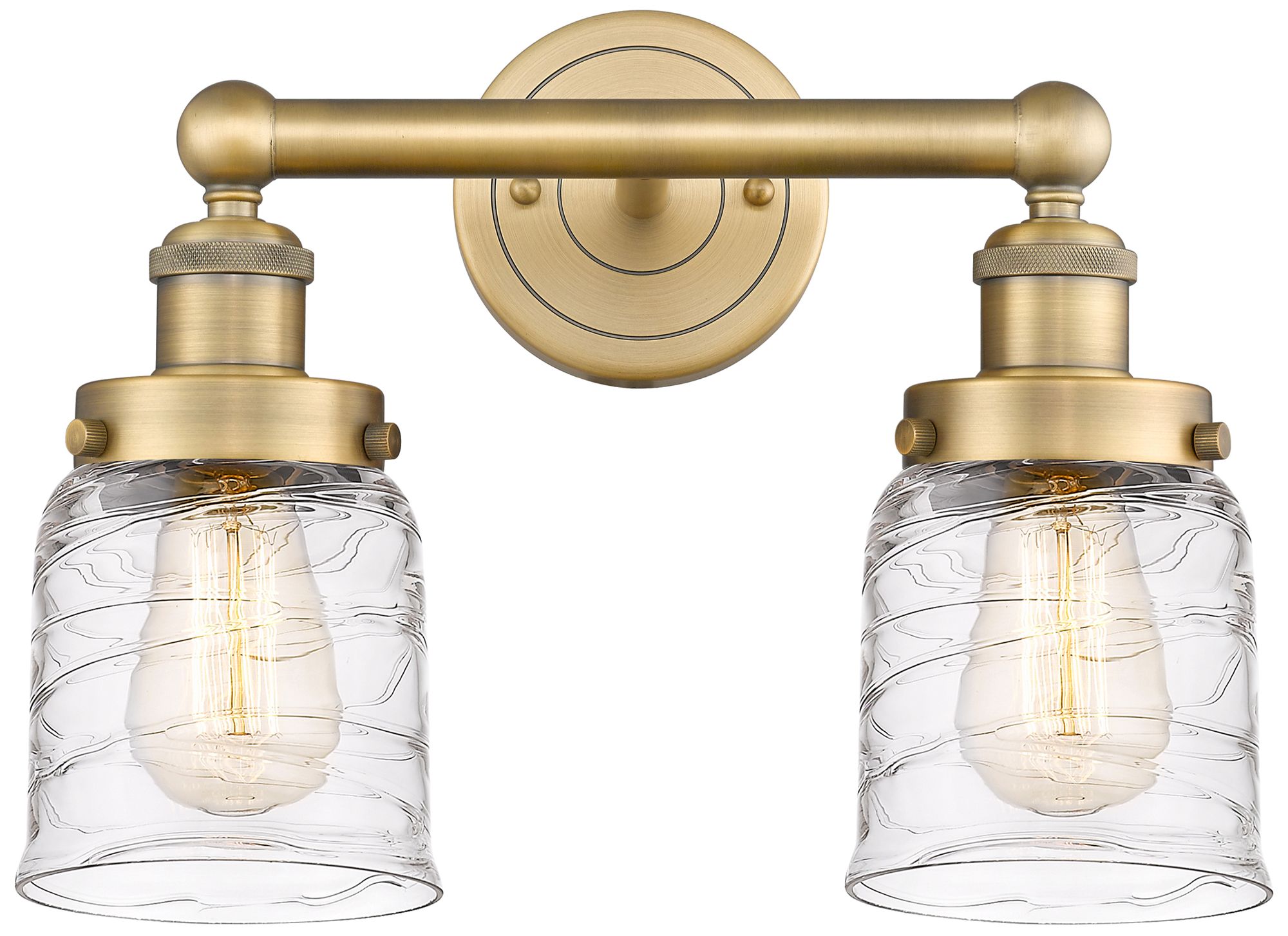 Edison Small Bell 15.5"W 2 Light Brushed Brass Bath Light w/ Swirl Sha