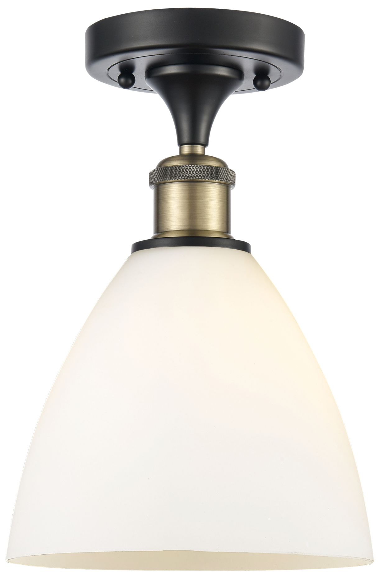 Bristol Glass 8" Semi-Flush Mount - Black Antique Brass - Matte White