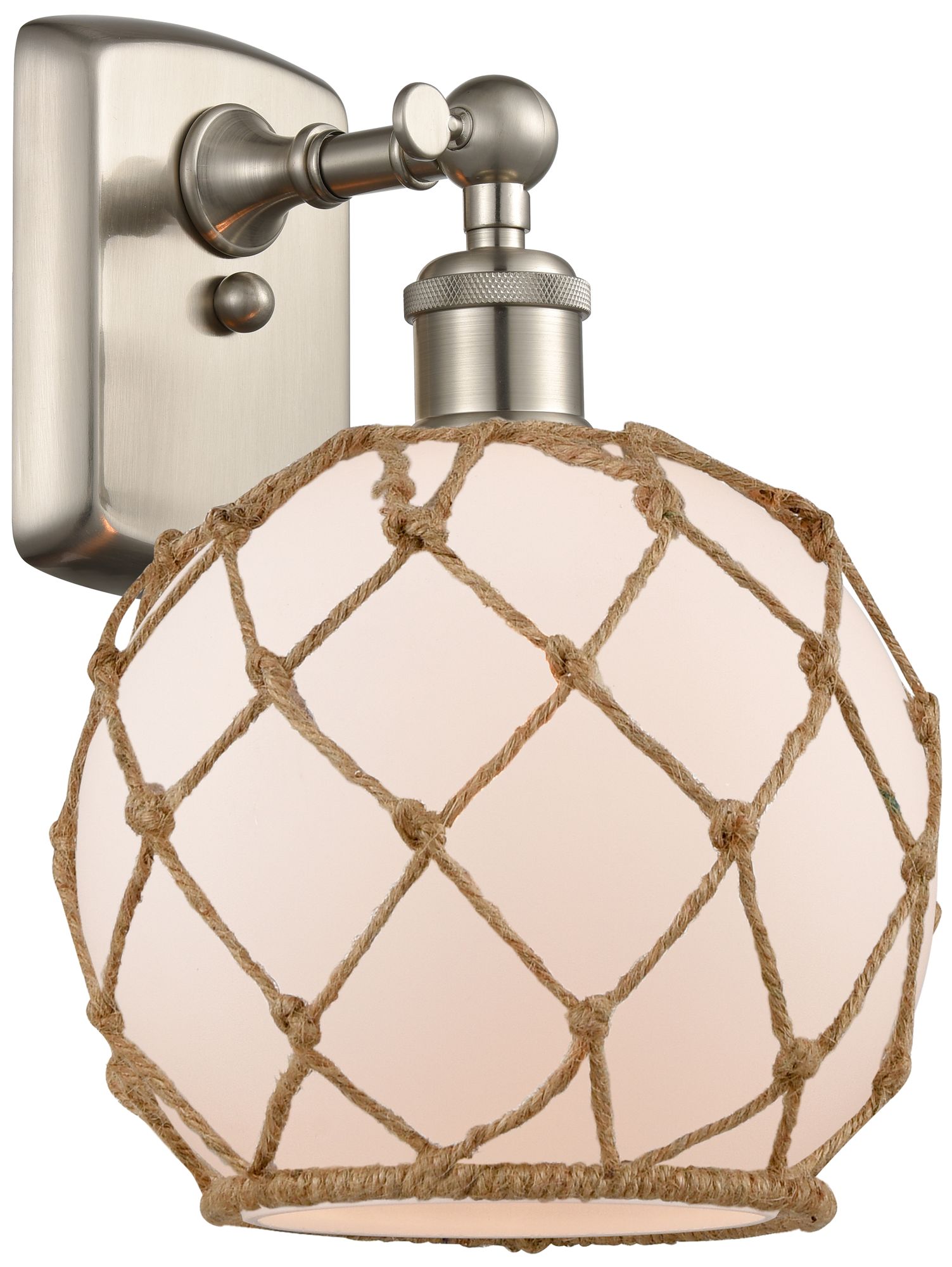 Farmhouse Rope 13"H Brushed Nickel Sconce w/ White and Brown Rope Shad