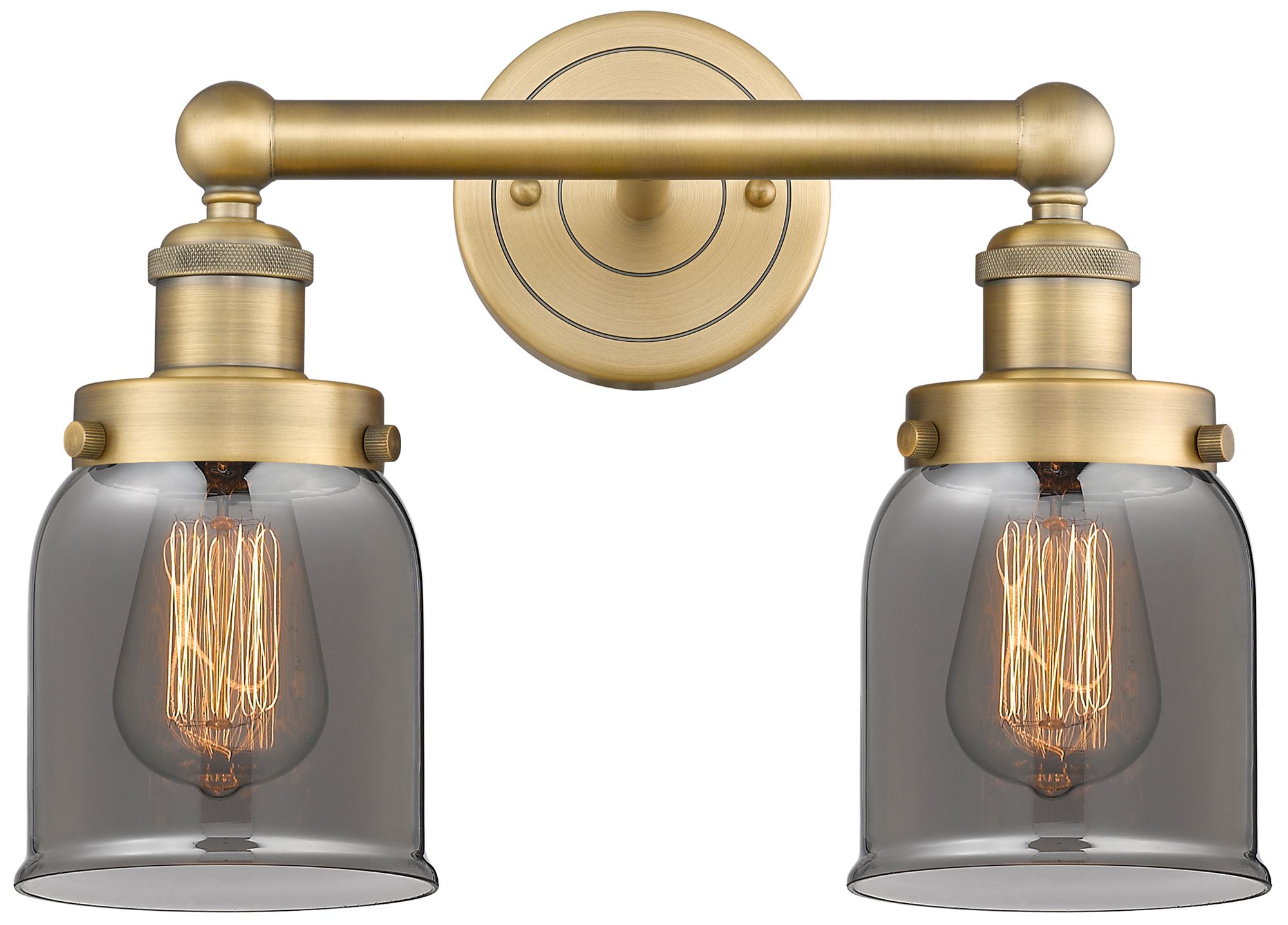 Edison Small Bell 15.5"W 2 Light Brushed Brass Bath Light With Smoke S