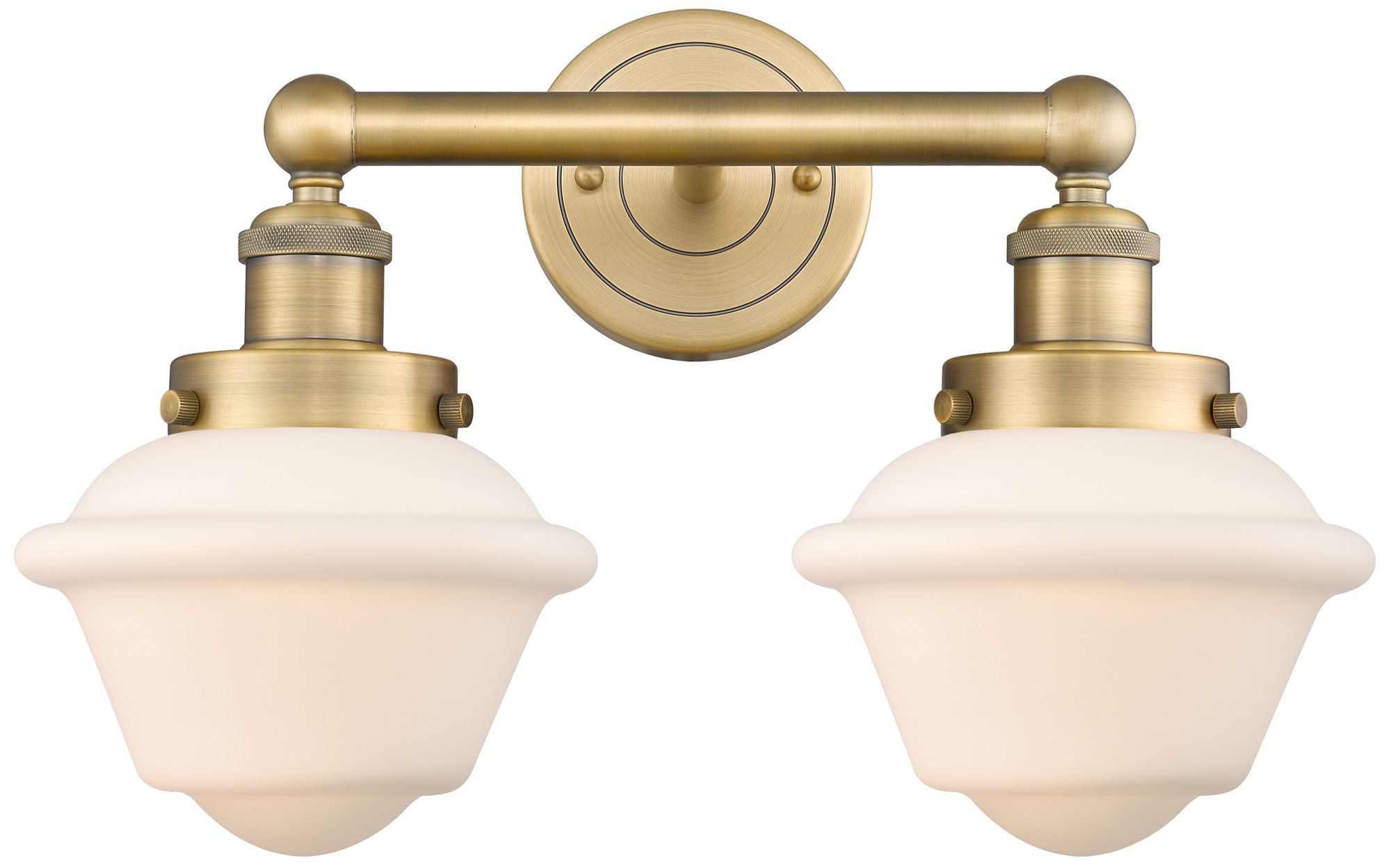 Oxford 15.5"W 2 Light Brushed Brass Bath Vanity Light With White Shade