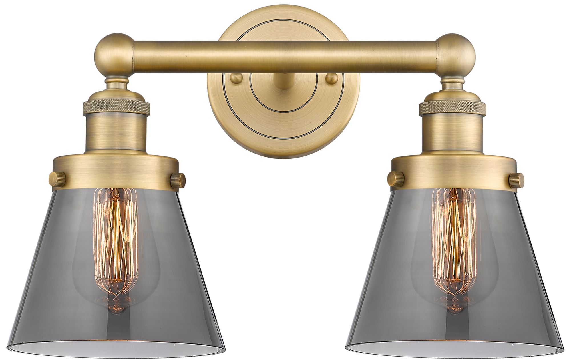 Edison Small Cone 15.5"W 2 Light Brushed Brass Bath Light With Smoke S