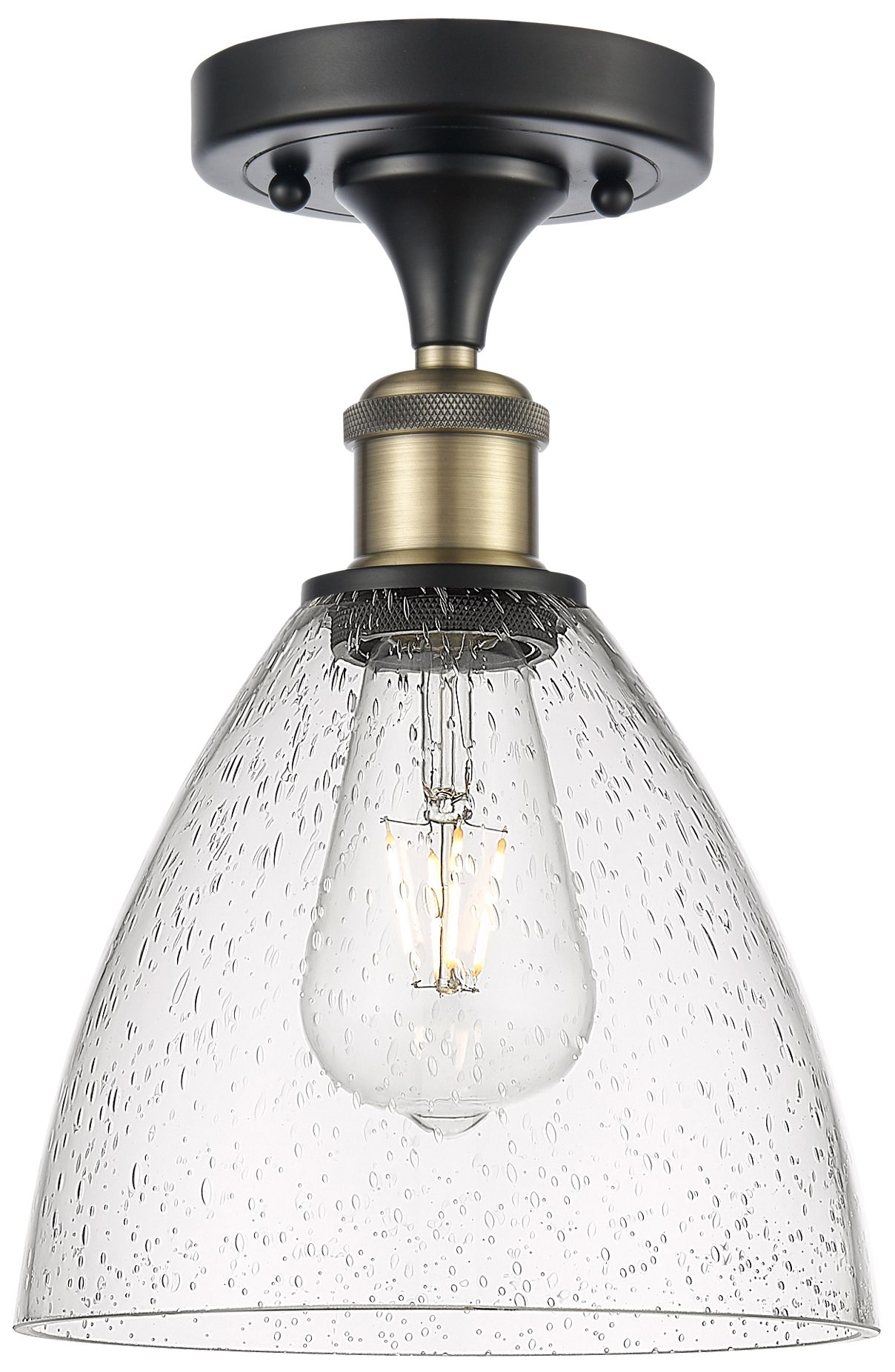 Bristol Glass 8" Semi-Flush Mount - Black Antique Brass - Seedy Shade
