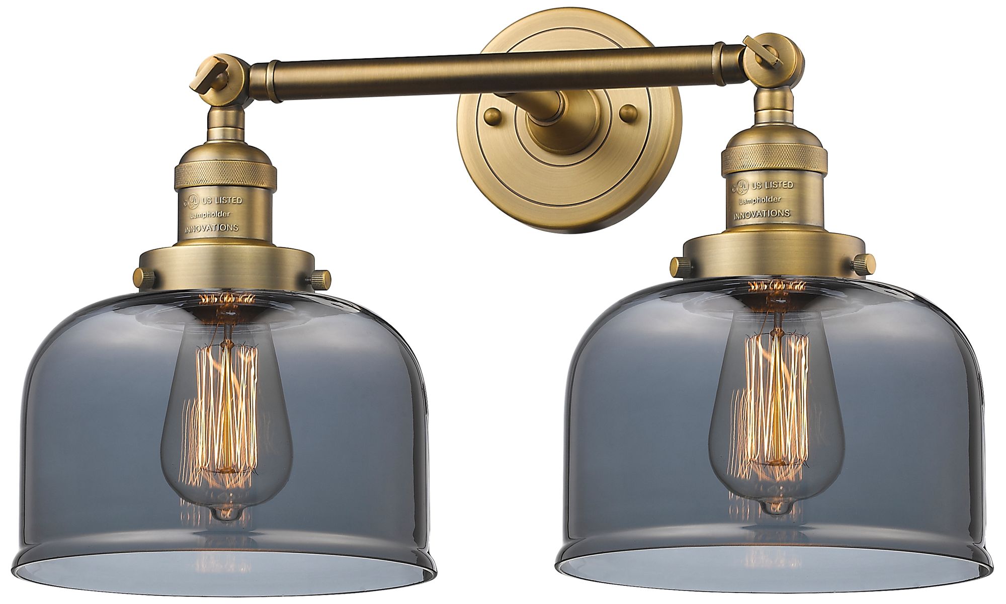 Bell 19" 2-Light Brushed Brass Bath Light w/ Plated Smoke Shade
