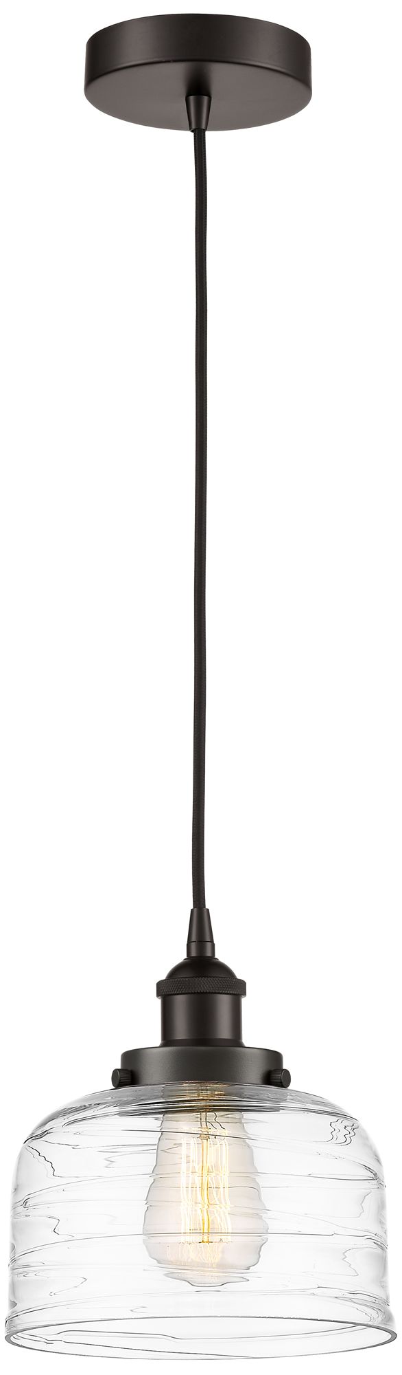 Bell 8" Oil Rubbed Bronze Mini Pendant w/ Clear Deco Swirl Shade