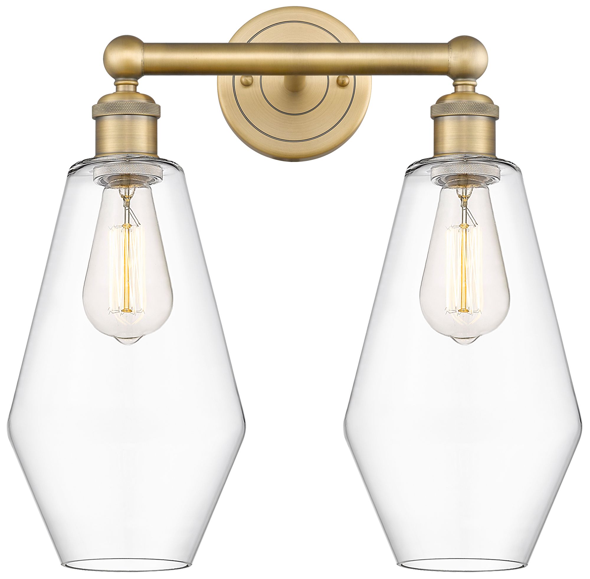 Cindyrella 16"W 2 Light Brushed Brass Bath Vanity Light With Clear Sha
