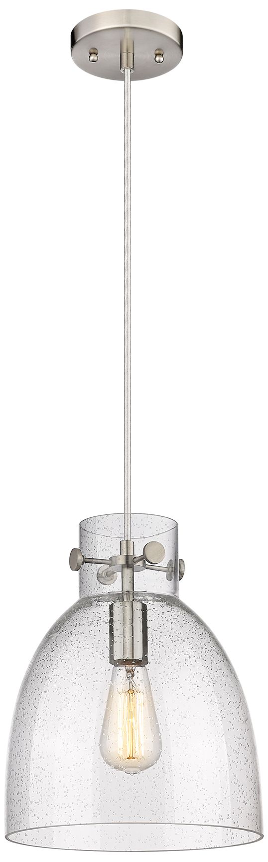 Newton Bell 10" Wide Satin Nickel Cord Hung Pendant With Seedy Glass S