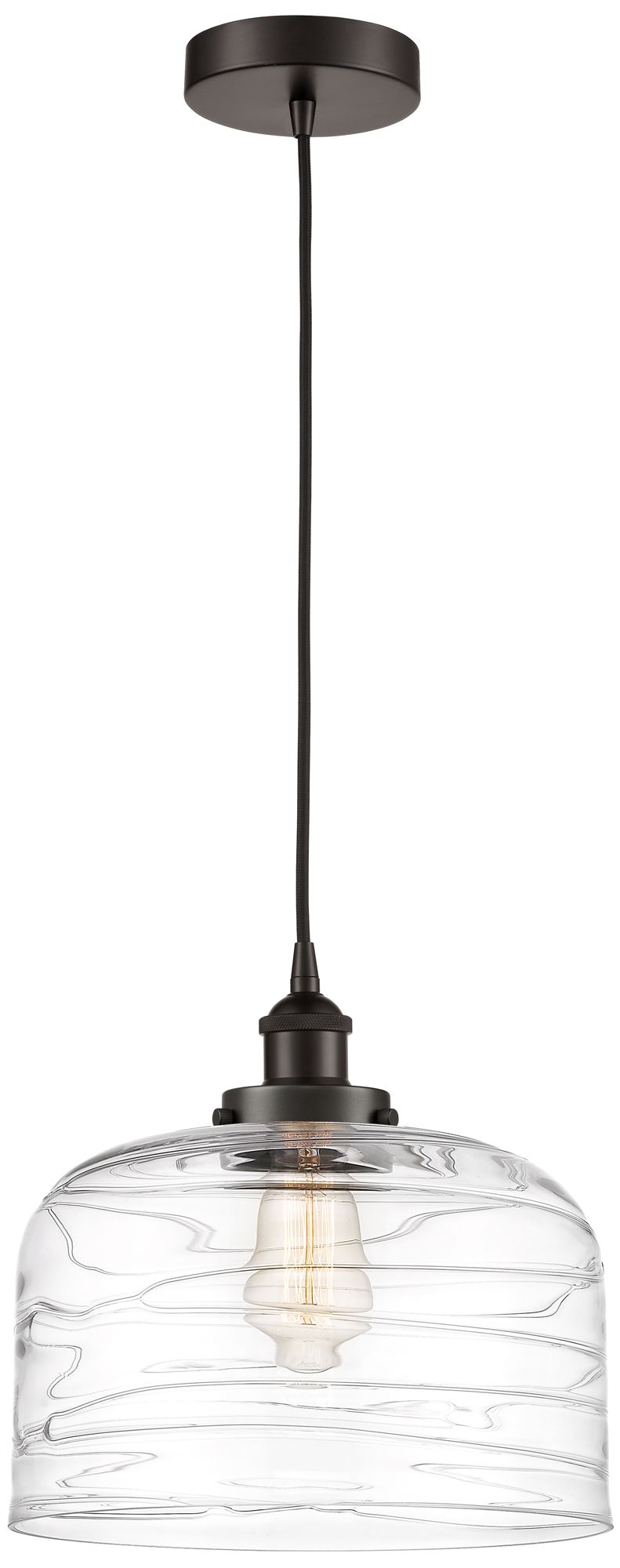 Bell 12" Oil Rubbed Bronze Mini Pendant w/ Clear Deco Swirl Shade