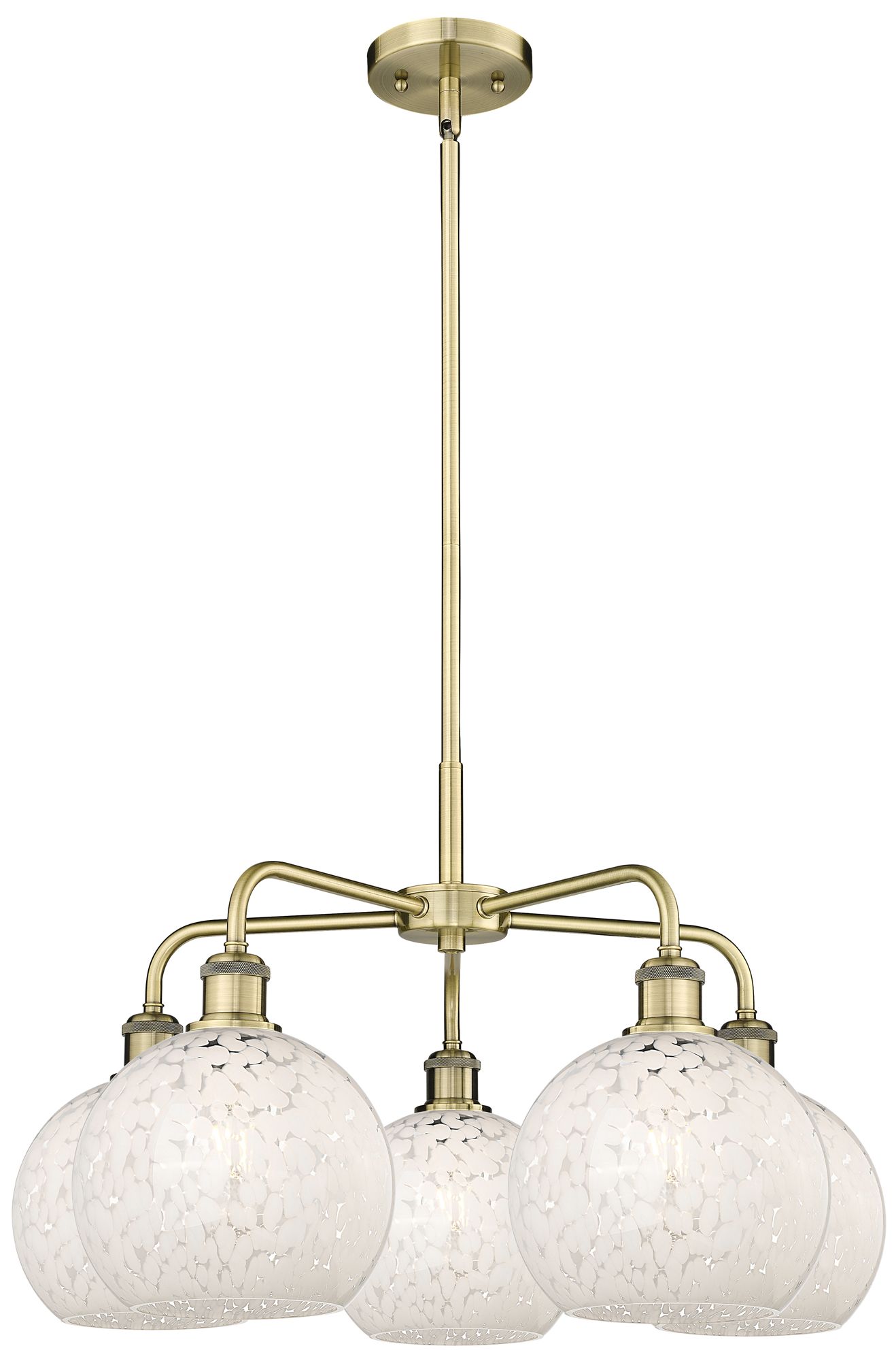Ballston 26"W 5 Light Antique Brass Stemmed Chandelier w/ Mouchette Sh