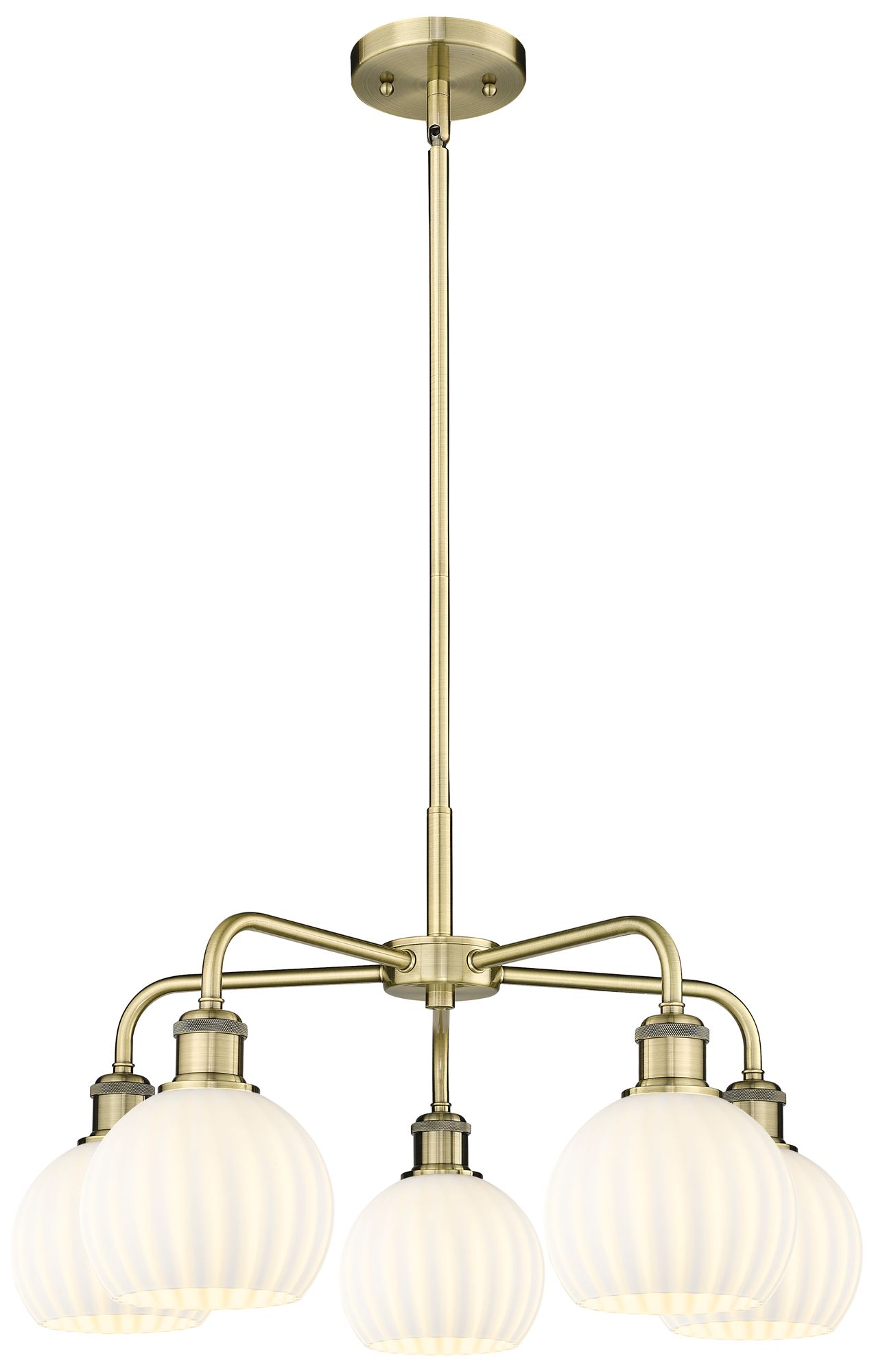 Ballston 24"W 5 Light Antique Brass Stemmed Chandelier w/ Venetian Sha