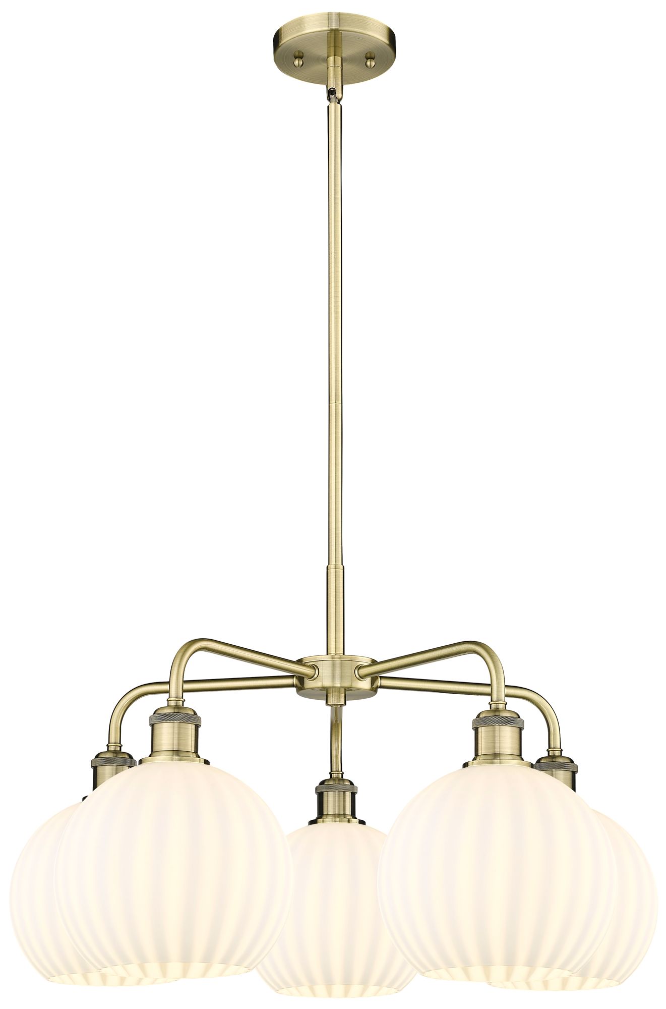 Ballston 26"W 5 Light Antique Brass Stemmed Chandelier w/ Venetian Sha