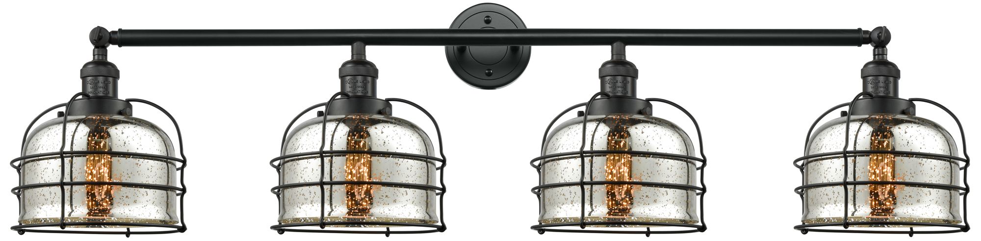 Franklin Bell Cage 44"W 4 Light Matte Black Bath Light w/ Mercury Shad