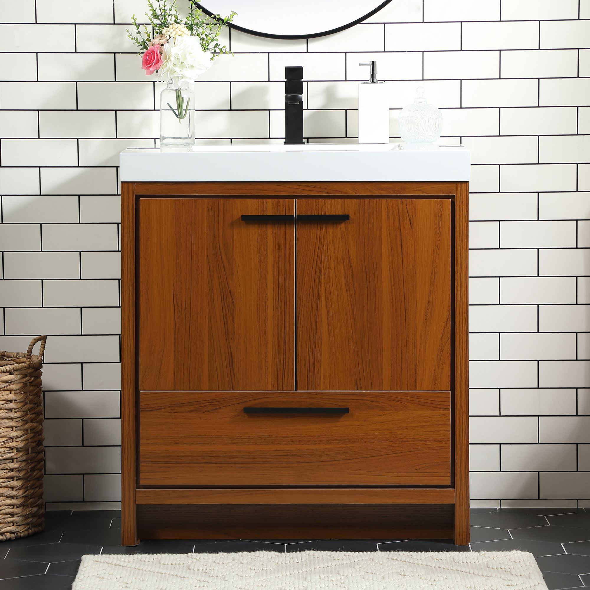 Wyatt 30" Wide Teak 2-Door Single Sink Bathroom Vanity