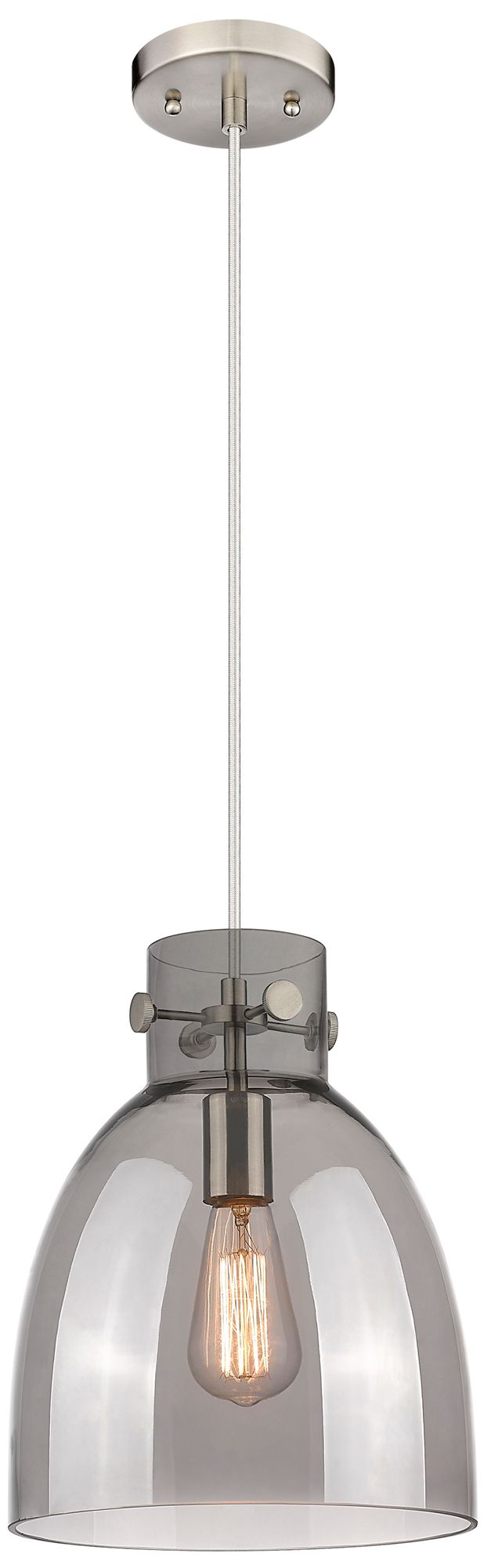 Newton Bell 10" Wide Satin Nickel Cord Hung Pendant With Plated Smoke